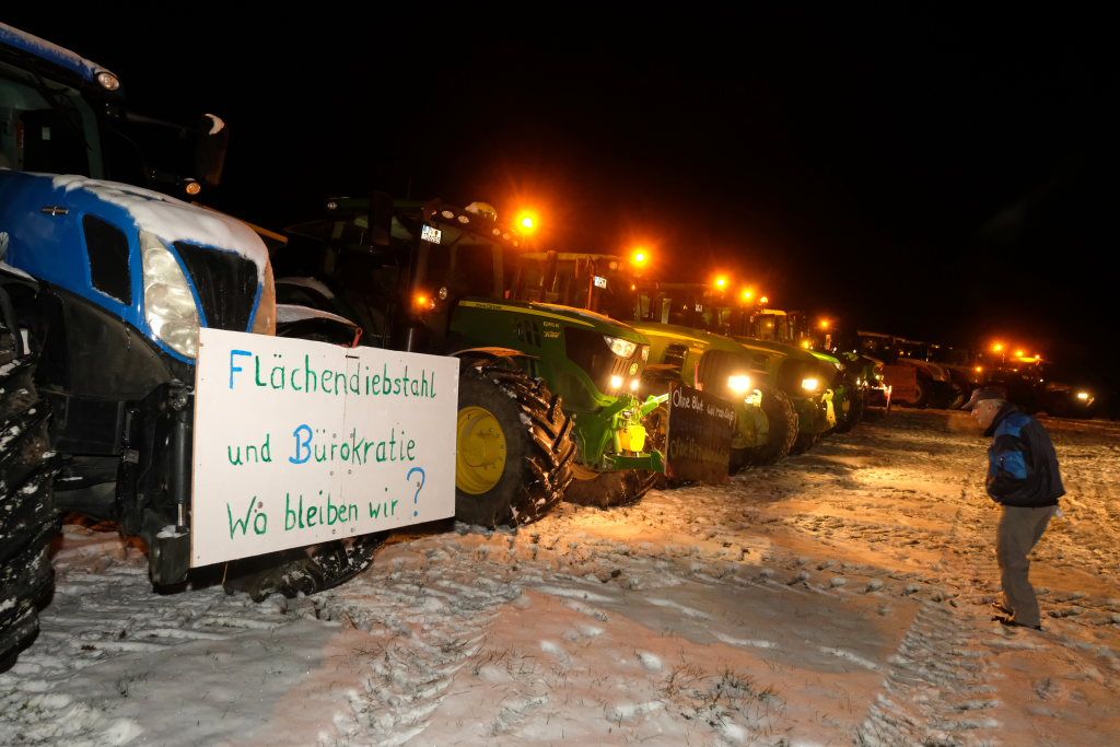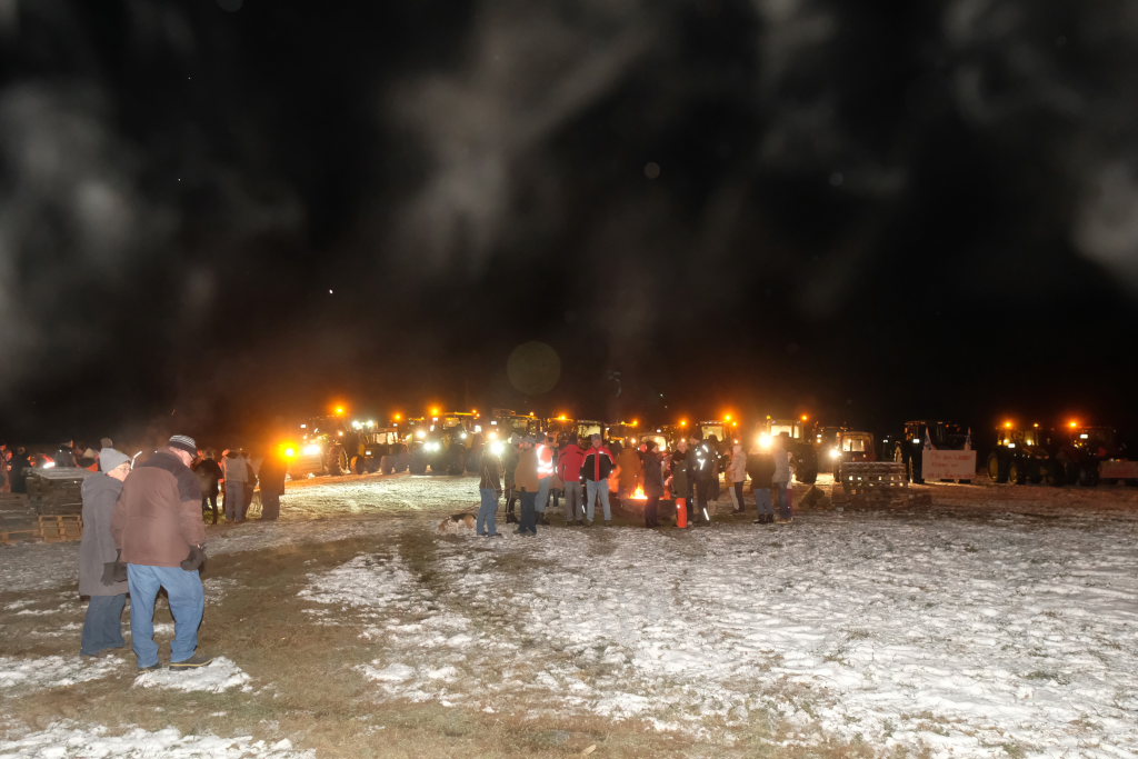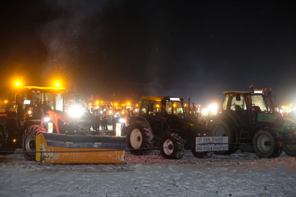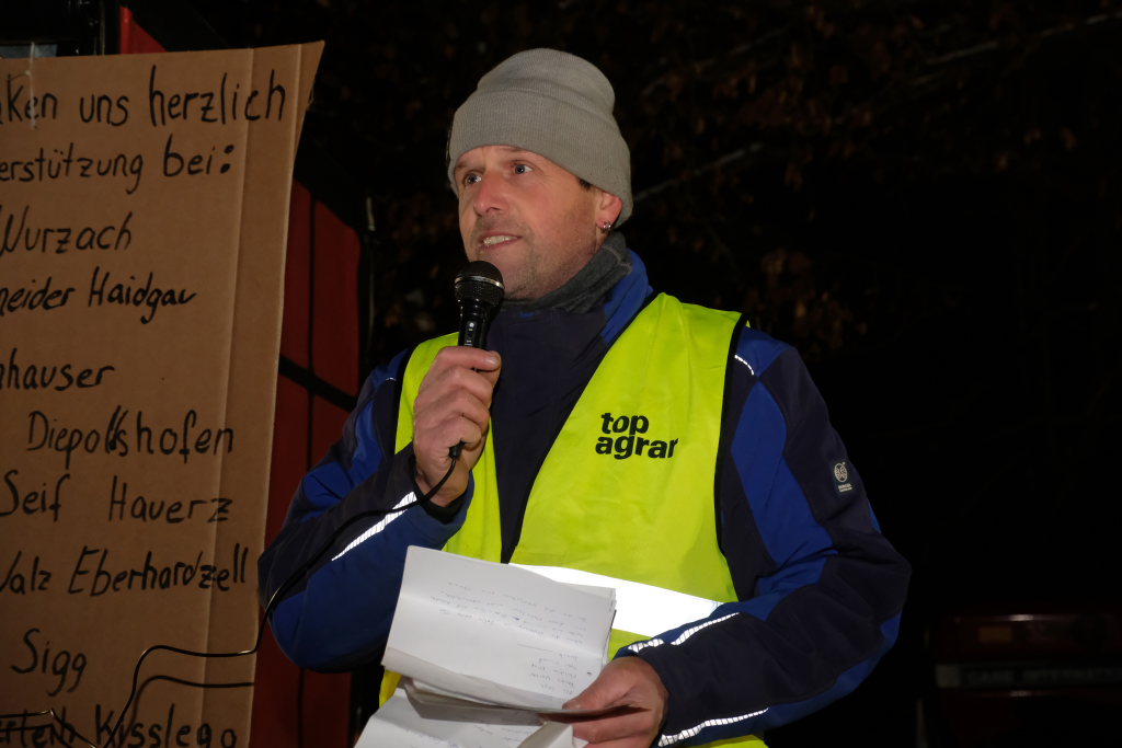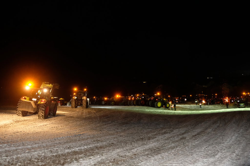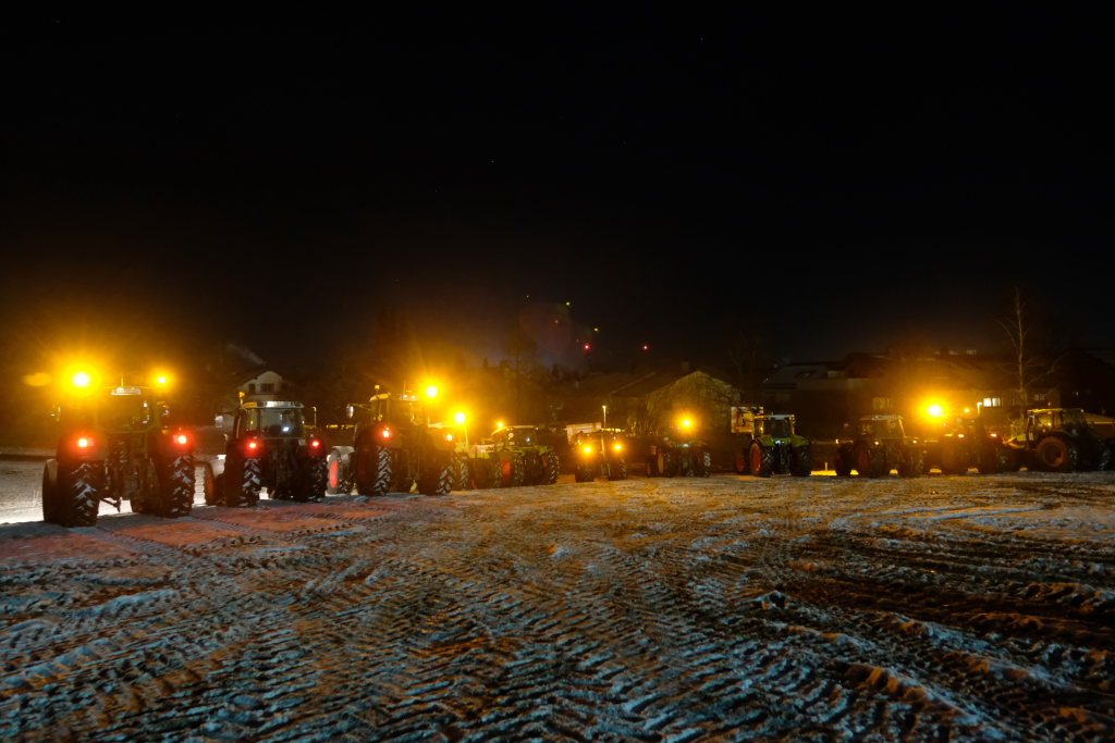 Zahlreiche Bauern kamen im Laufe des Abends in diversen Konvois aus allen Himmelsrichtungen auf die „Festwiese“ gefahren. Aus Bergatreute, Bad Waldsee und Leutkirch, aber auch aus dem benachbarten Landkreis Biberach kamen sie mit ihren Fahrzeugen angefahren, um ihren Protest auszudrücken, aber auch um sich der Solidarität der Bevölkerung zu versichern.