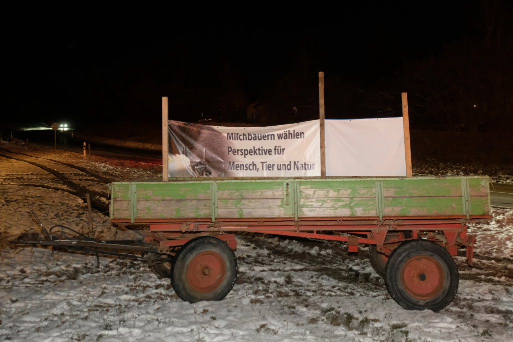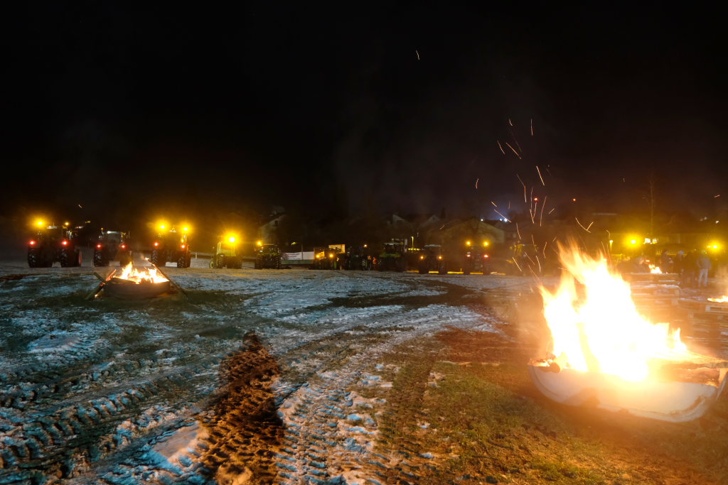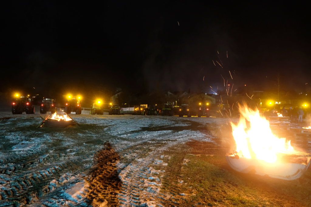 Bad Wurzach – Auf der großen Wiese der Familie Vincon – gut sichtbar von der B 465 aus – wurden von protestierenden Bauern aus der Region am Freitagabend (19.1.) Mahnfeuer entzündet, um damit weitere Zeichen gegen die Regierungsentscheidungen in Berlin zu setzen.