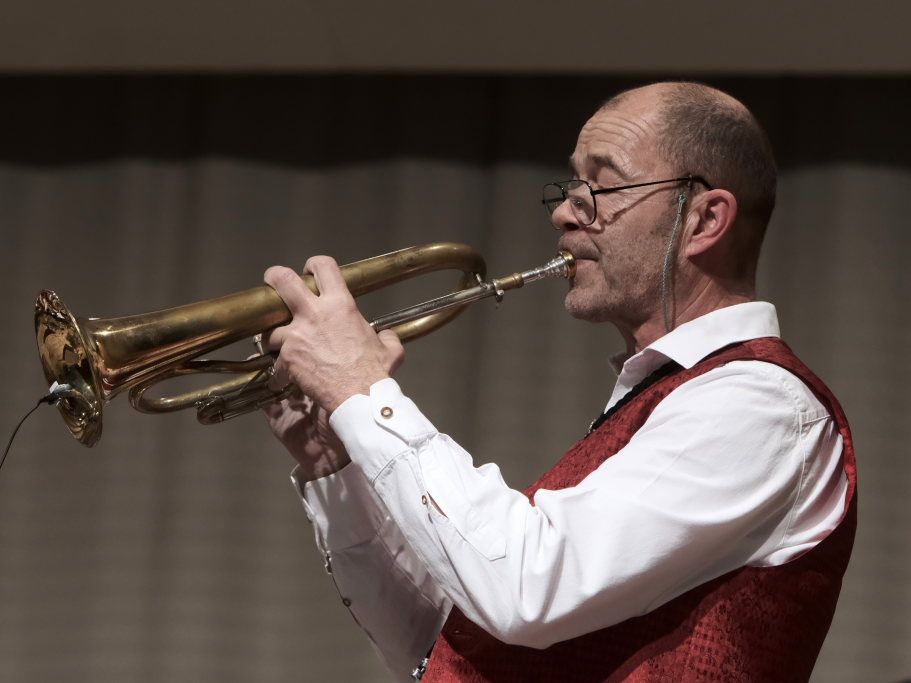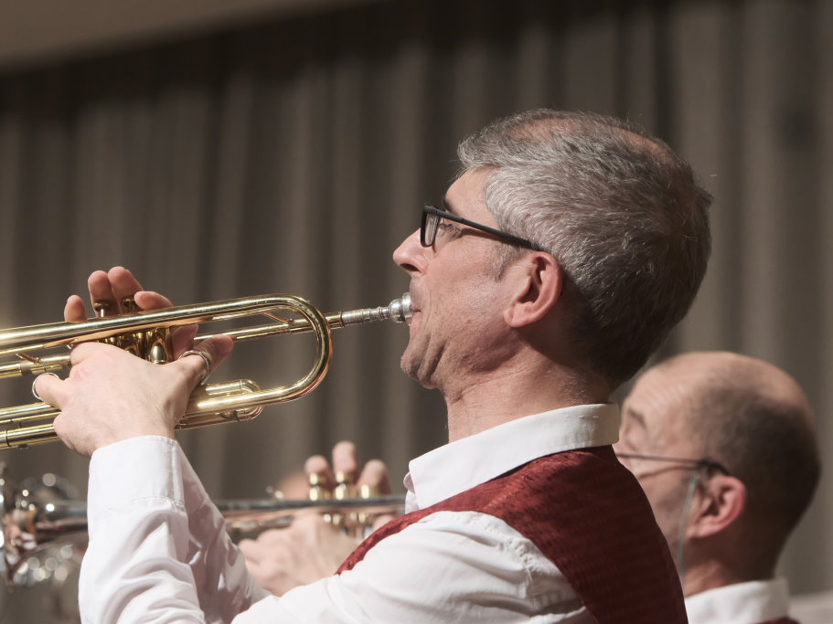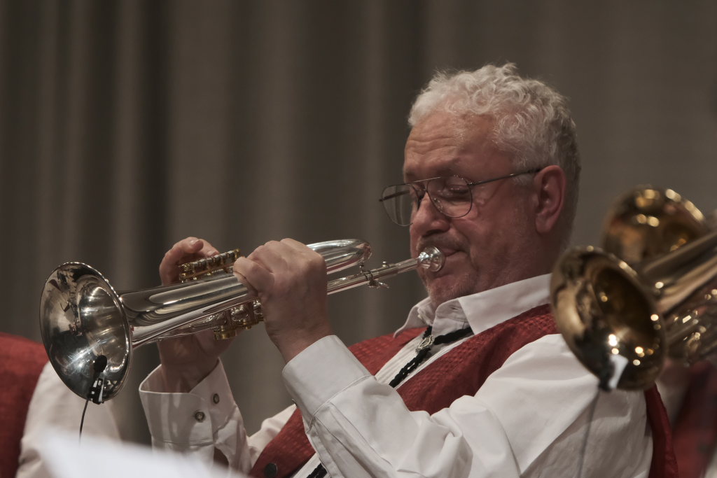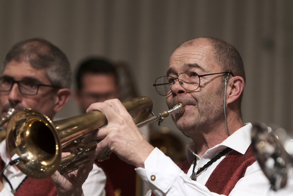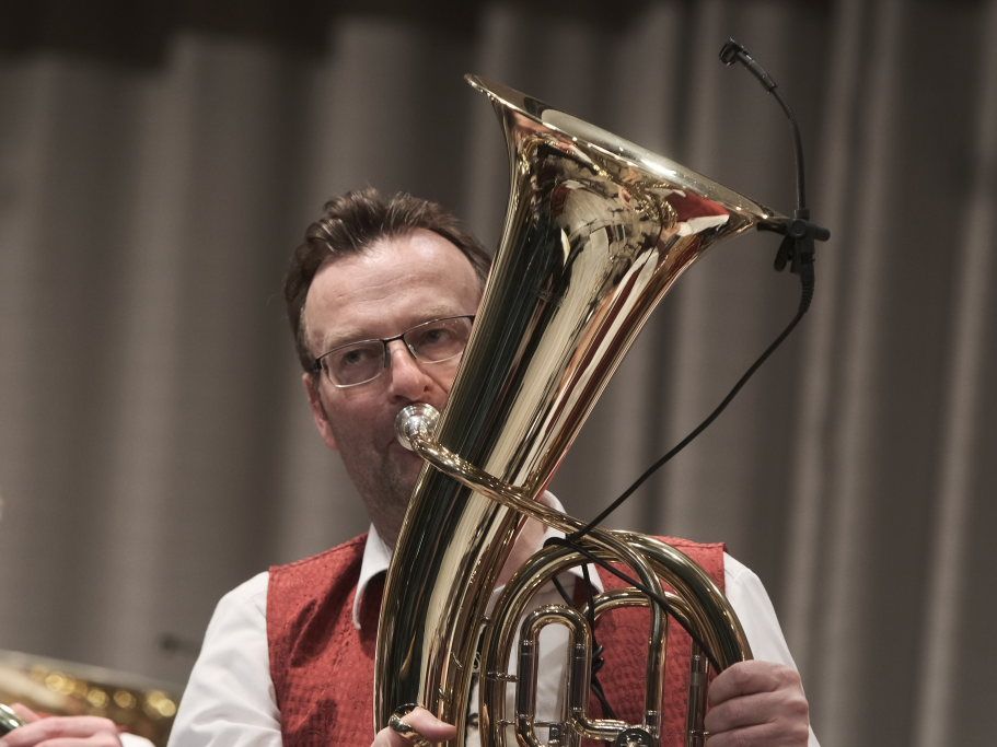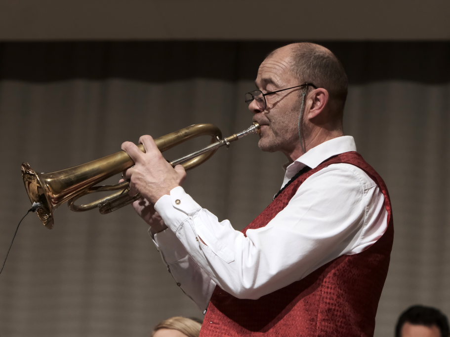 Kein Unterschied zu einem Konzert mit Peter Schad war bei den Solisten zu erkennen: Ob Flötistin Ingrid Baumann bei den „Dornenvögeln“, Posaunist Manuel Zier mit der Froschpolka, Klaus Merk am Tenorhorn bei Carrickfergus, allen merkte man die große Spielfreude an, mit der sie zu Werke gingen.