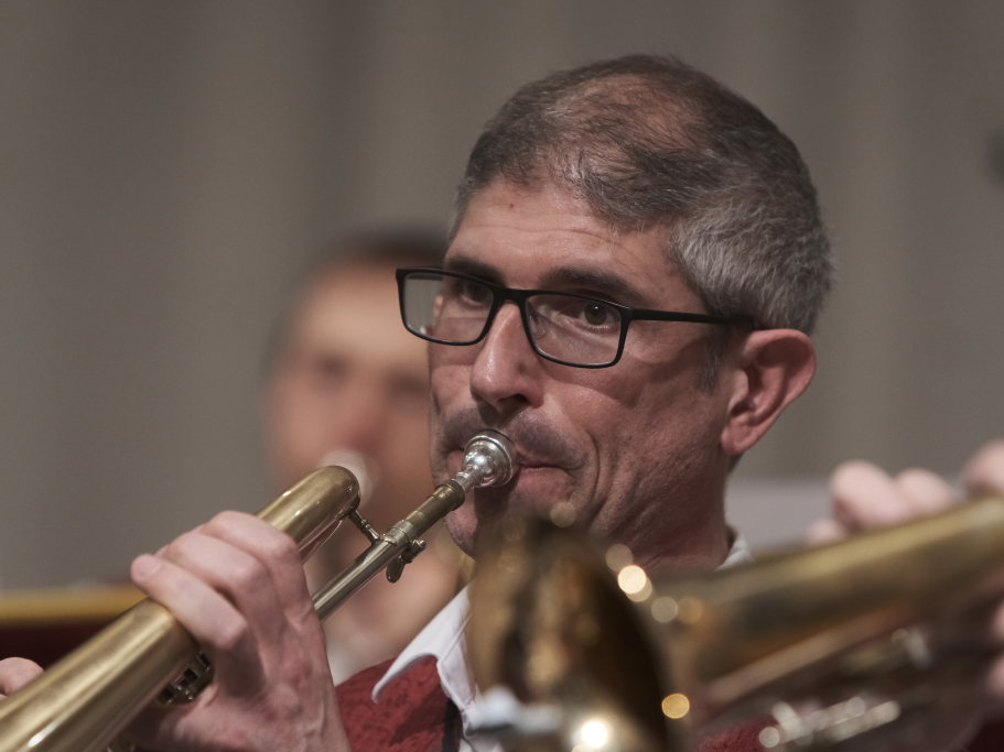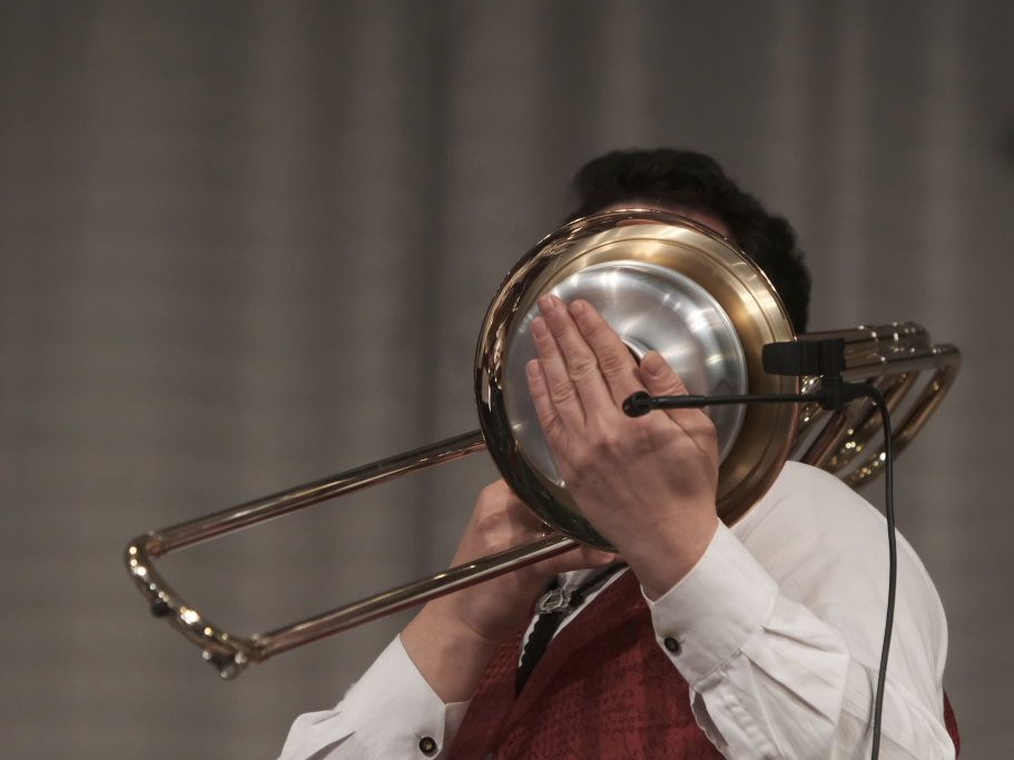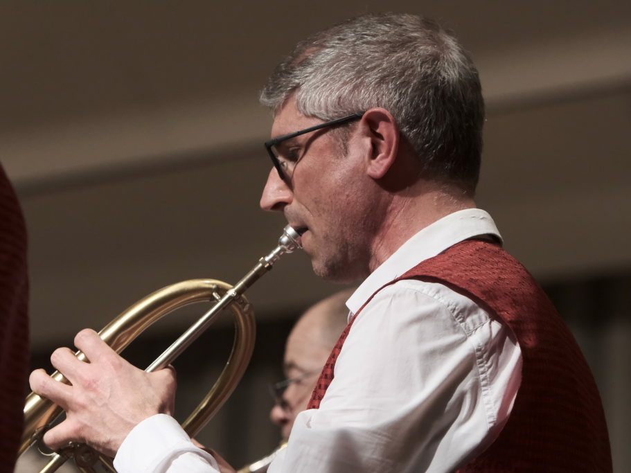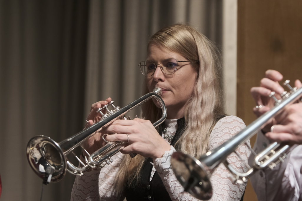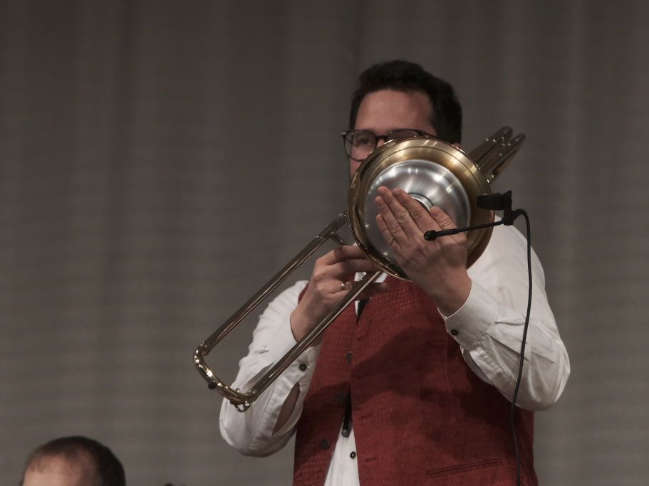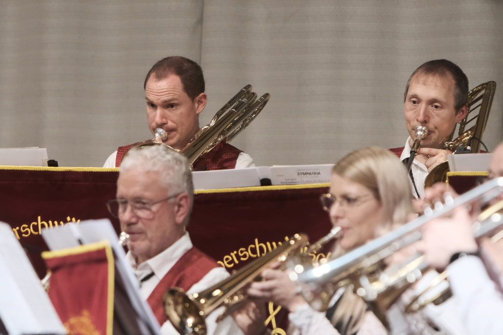 Kein Unterschied zu einem Konzert mit Peter Schad war bei den Solisten zu erkennen: Ob Flötistin Ingrid Baumann bei den „Dornenvögeln“, Posaunist Manuel Zier mit der Froschpolka, Klaus Merk am Tenorhorn bei Carrickfergus, allen merkte man die große Spielfreude an, mit der sie zu Werke gingen.