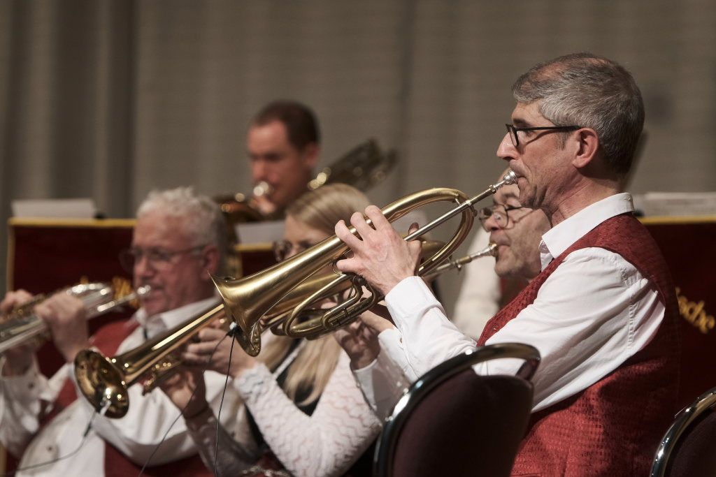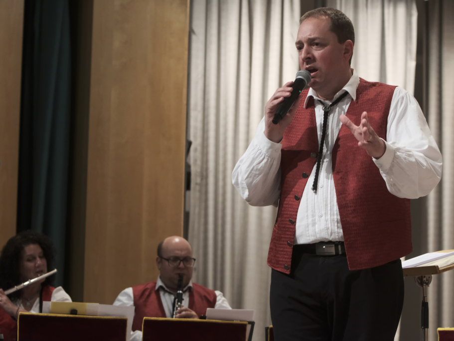 Und seinen eigenen Humor bewies er auch, als er vor der von Flügelhornist und Ex-Kommissar Michael Kuhn geschriebenen Polka Liebesgeflüster, diesen mit dem Kommissar-Witz aufzog: „Kommt die Tochter aus dem Schullandheim mit den Worten nach Hause: Ich bin schwanger, hier die Liste der Verdächtigen.“