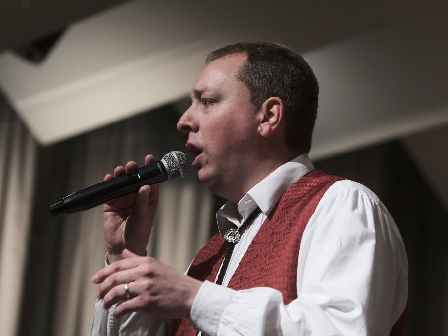 Hinter Simon Föhr, dem neuen musikalischen Leiter der Oberschwäbischen Dorfmusikanten (OSDM) liegt ein aufregendes Jahr: Nach der endlich möglichen Hochzeit, die er wegen Corona zweimal verschieben mußte, dem Abschiedskonzert von Peter Schad im September und der Frage, ob und wie es mit der Kapelle weitergeht, war es ein langer Weg bis zu dieser Konzertpremiere jetzt im Kurhaus. Der (ehemalige) Posaunist und Sänger der Dorfmusikanten führt jetzt neben seiner Dirigententätigkeit gemeinsam mit Goldkehlchen Carina Kienle durch das Programm.
