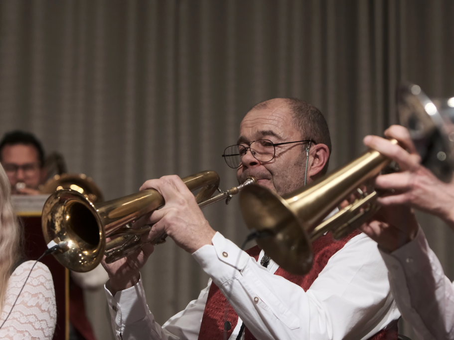 „Ich hätte beinahe herlaufen können,“ meinte die Sängerin in ihrer Anmoderation, für die es ebenfalls wie auch für den neuen Posaunisten Jürgen Münsch aus Haidgau ein Heimspiel wurde. Sehr schön war, dass es Simon Föhr gelungen ist, alle Musiker zu halten und mit Timo Bossler aus Arnach einen einheimischen Trompeter und Flügelhornisten für die Wurzacher Galaabende als Ersatz zu gewinnen.