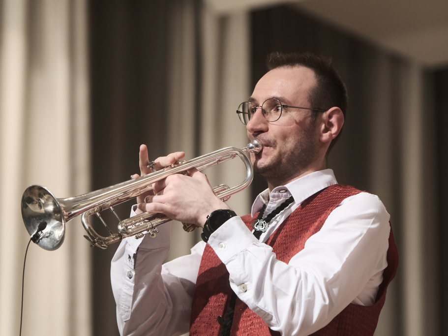 Mit Markus Elsers´ virtuoser Interpretation von „Der alte Dessauer“ und der von Simon Föhr komponierten Risstalpolka, bei der sofort der Stimmungsfunke übersprang, ging es in die wohlverdiente Pause. Mucksmäuschenstill war es im Kursaal während Elser´s Soli, um so frenetischer brach sich danach der Applaus Bahn.