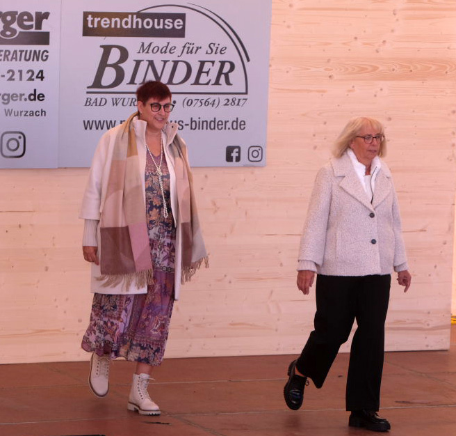 Apropos Personal: Seit vielen Jahren stellt das Show-Ensemble „Joy of voice“ aus Aitrach neben den Tänzerinnen und Tänzern von Bliems Bunte Bünhne den Löwenanteil der Models. Moderation und Choreografie liegen seit viele Jahre in bewährten Händen: Gabi Lipp, die selbst immer auch als Model mit an Bord ist, bringt die Mode jeweils in gekonnten und erfrischenden Choreografien auf die Bühne.