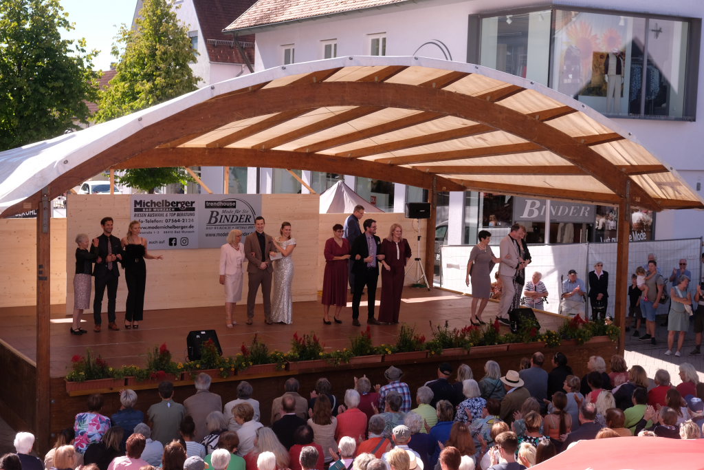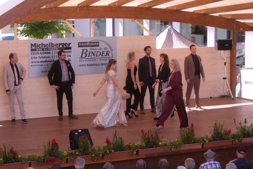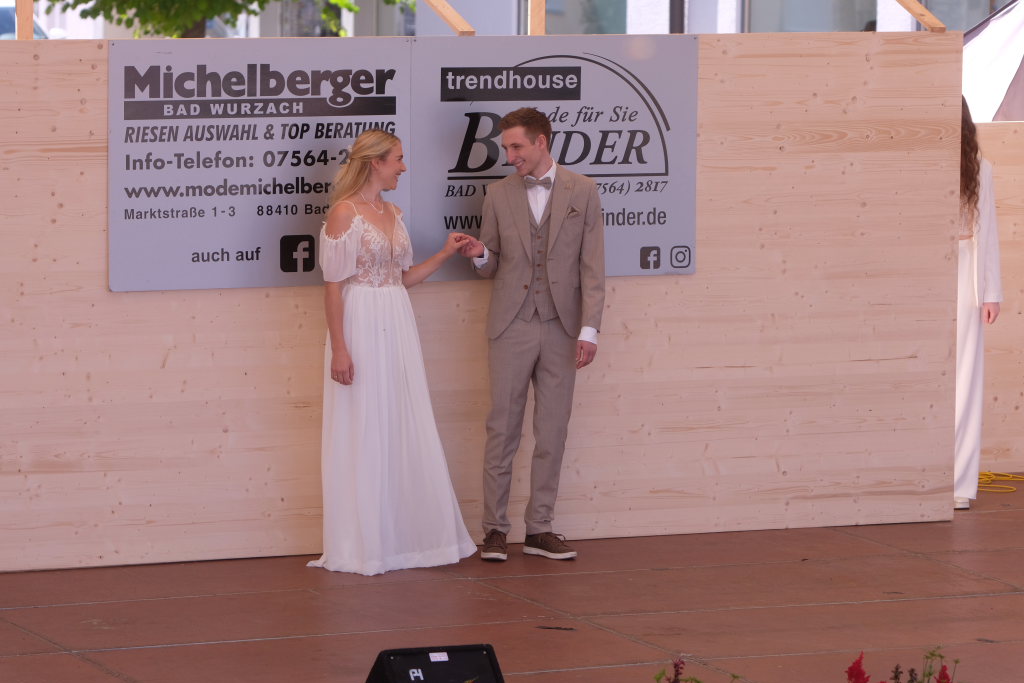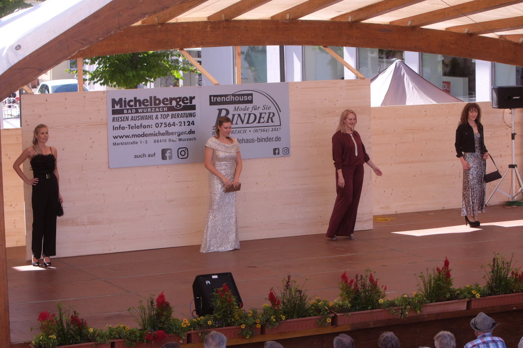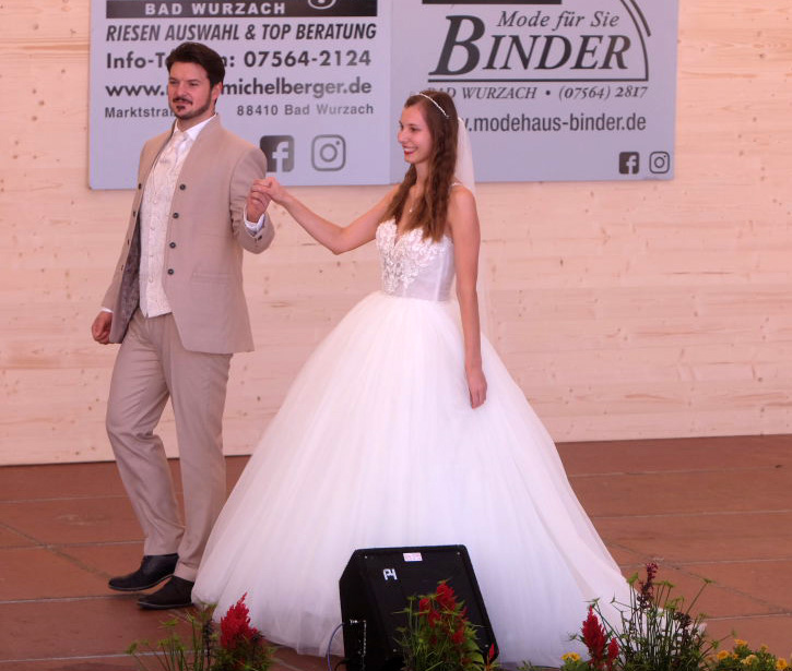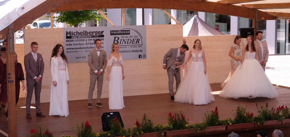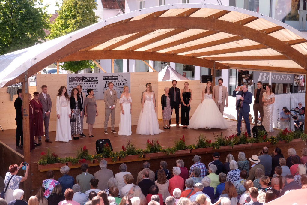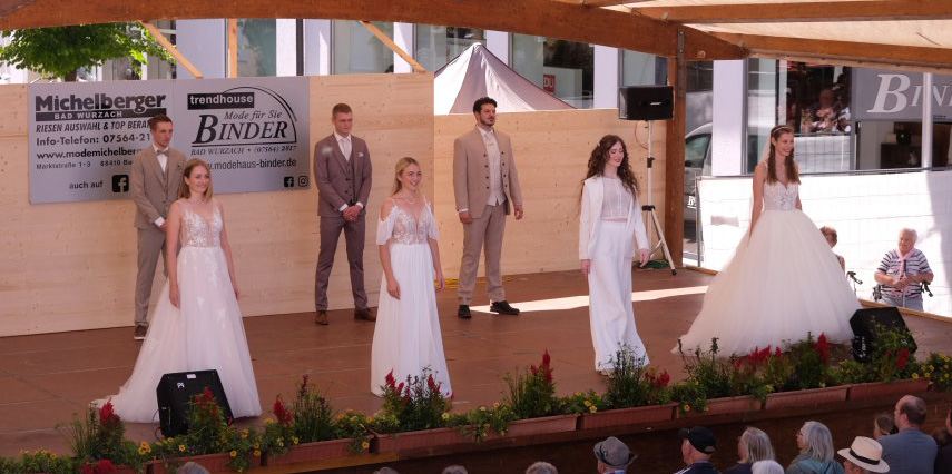 Bad Wurzach – Die Modenschauen der Modehäuser Michelberger und Binder sind ein Herzstück des Bad Wurzacher Stadtfestes. Bei bestem Wetter am Stadtfestsonntag gab es schon lange vor dem Beginn der beiden Schauen nur noch Stehplätze vor der großen Bühne beim Spital. Die Modenschauen der beiden Modehäuser Herrenmoden Michelberger und Damenmoden Binder mit ihren Spartenhäusern Trendhouse für junge Mode, Wäschehaus sowie das Brautmodenhaus sind und waren von Anfang an die Highlights des Bad Wurzacher Stadtfestes, so auch bei dessen 47. Ausgabe.