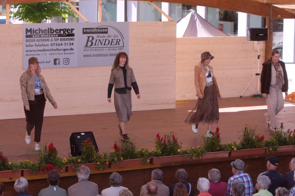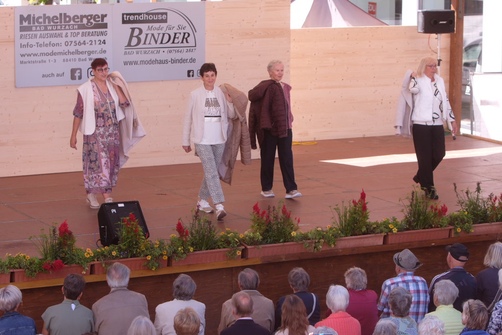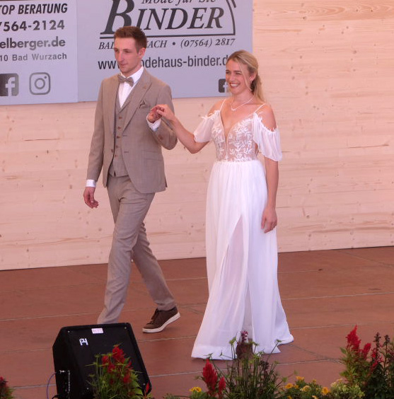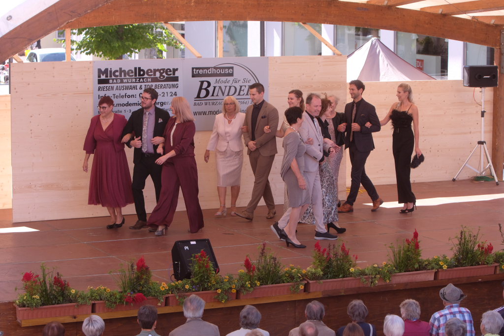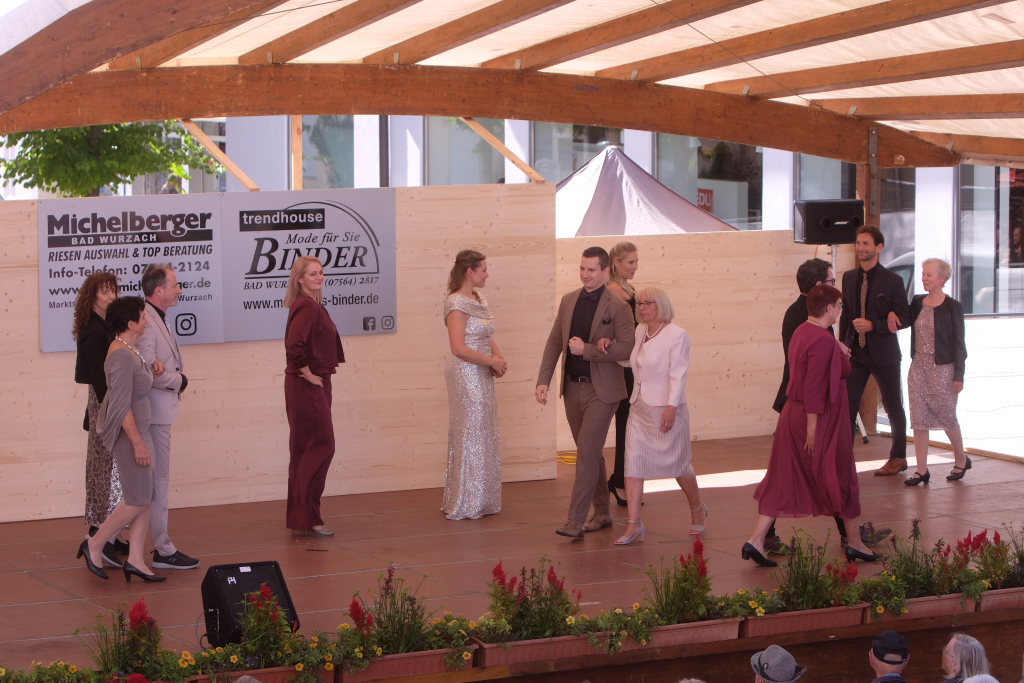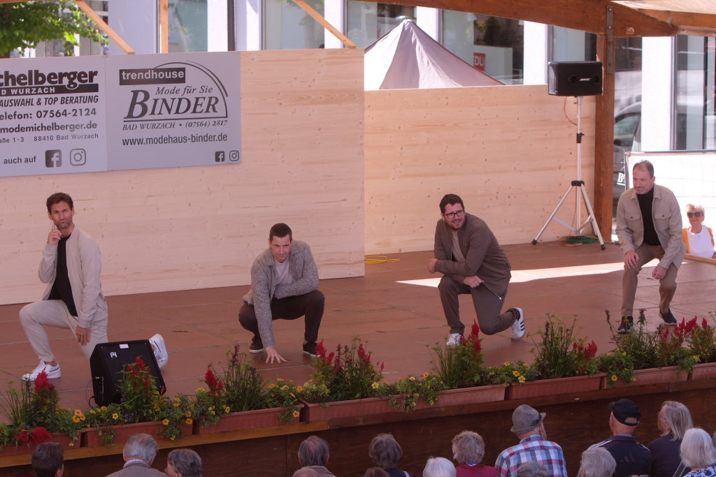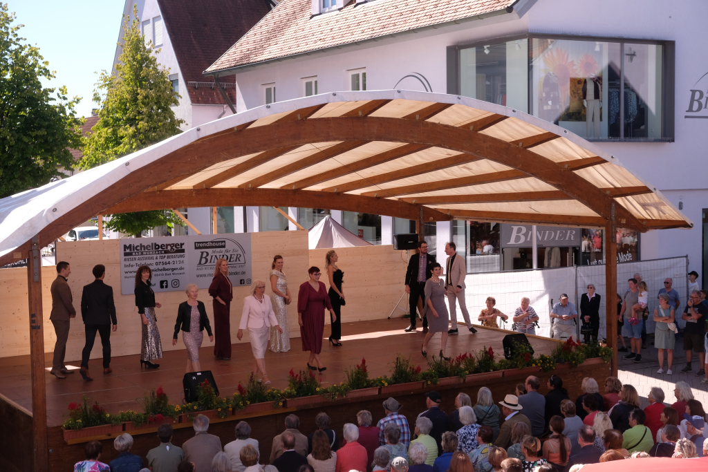 Bad Wurzach – Die Modenschauen der Modehäuser Michelberger und Binder sind ein Herzstück des Bad Wurzacher Stadtfestes. Bei bestem Wetter am Stadtfestsonntag gab es schon lange vor dem Beginn der beiden Schauen nur noch Stehplätze vor der großen Bühne beim Spital. Die Modenschauen der beiden Modehäuser Herrenmoden Michelberger und Damenmoden Binder mit ihren Spartenhäusern Trendhouse für junge Mode, Wäschehaus sowie das Brautmodenhaus sind und waren von Anfang an die Highlights des Bad Wurzacher Stadtfestes, so auch bei dessen 47. Ausgabe.