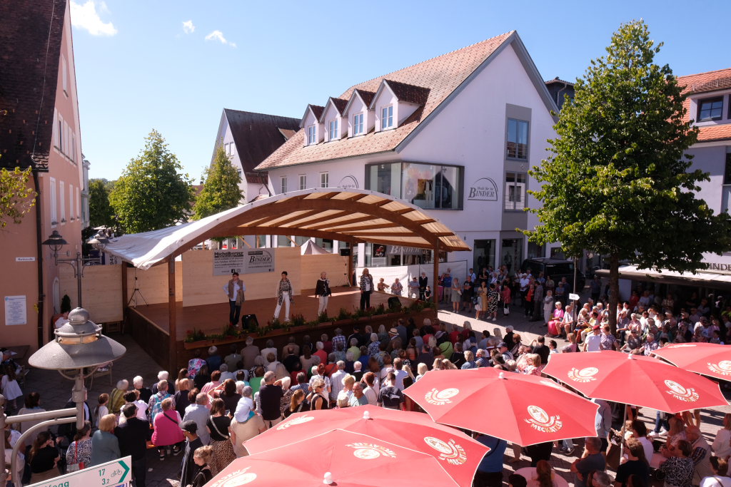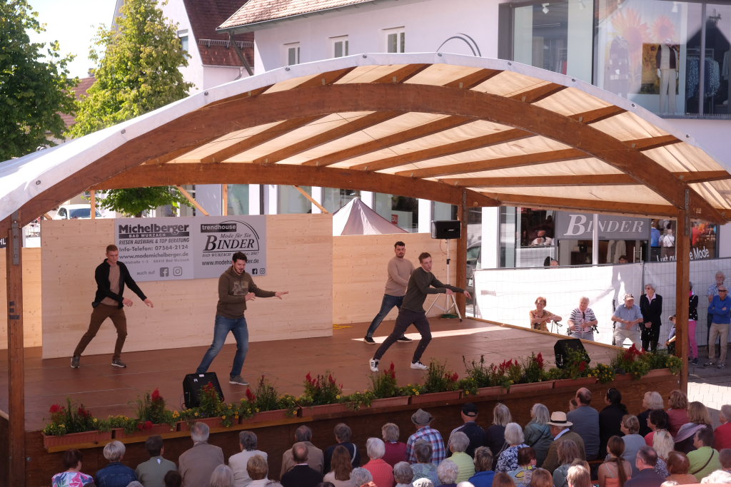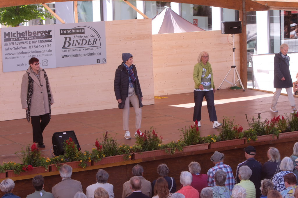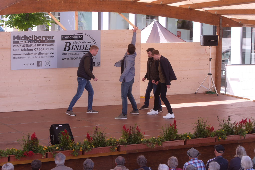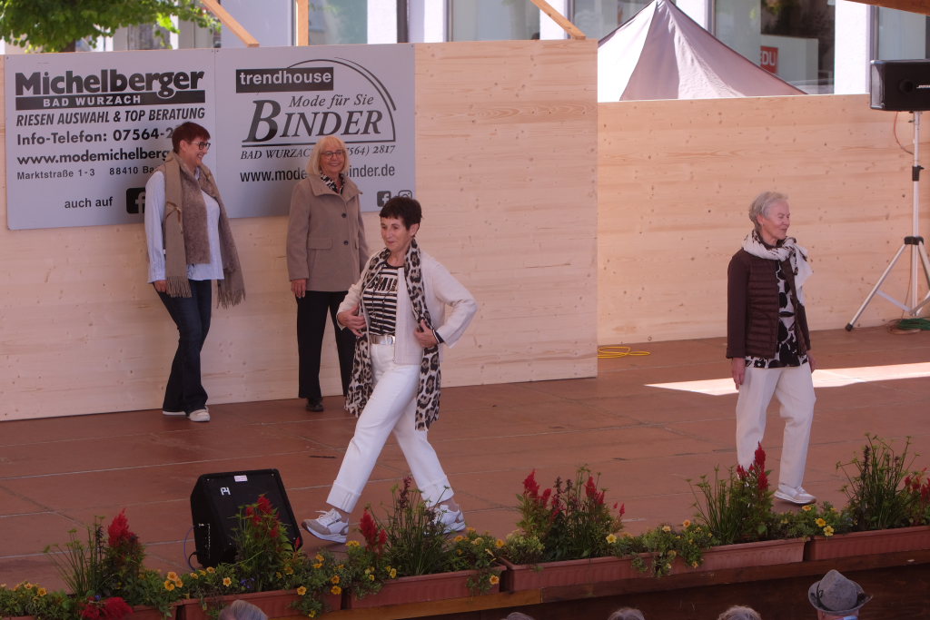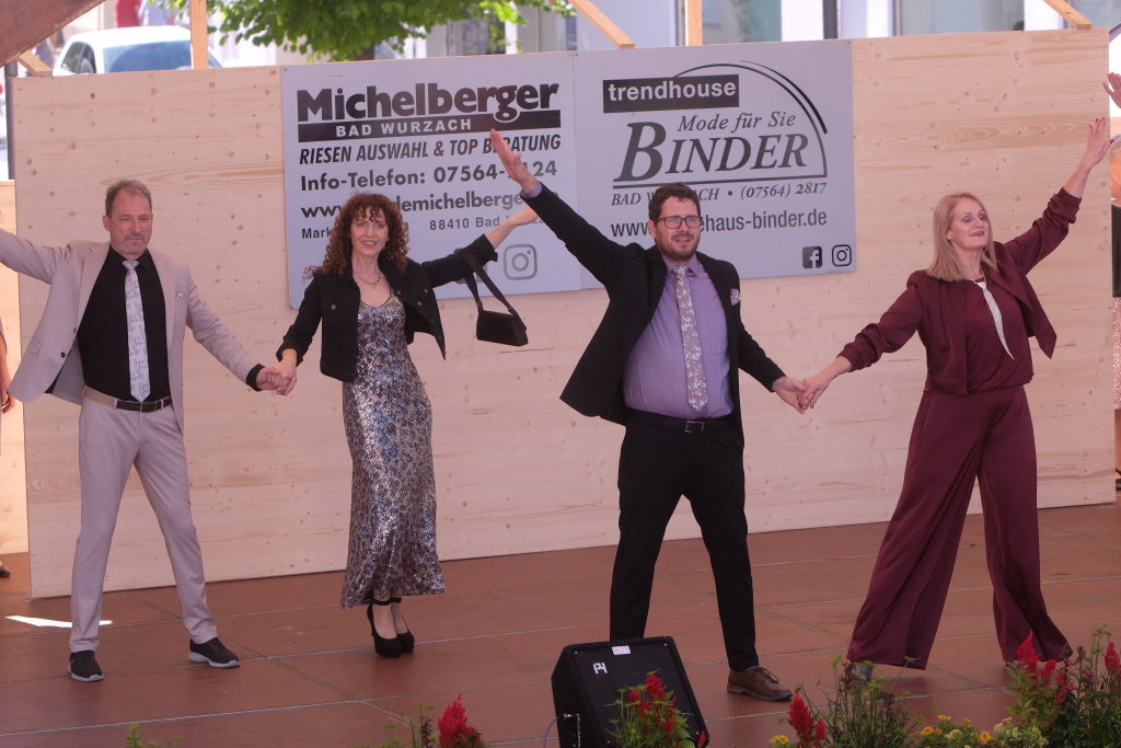 Bad Wurzach – Die Modenschauen der Modehäuser Michelberger und Binder sind ein Herzstück des Bad Wurzacher Stadtfestes. Bei bestem Wetter am Stadtfestsonntag gab es schon lange vor dem Beginn der beiden Schauen nur noch Stehplätze vor der großen Bühne beim Spital. Die Modenschauen der beiden Modehäuser Herrenmoden Michelberger und Damenmoden Binder mit ihren Spartenhäusern Trendhouse für junge Mode, Wäschehaus sowie das Brautmodenhaus sind und waren von Anfang an die Highlights des Bad Wurzacher Stadtfestes, so auch bei dessen 47. Ausgabe.