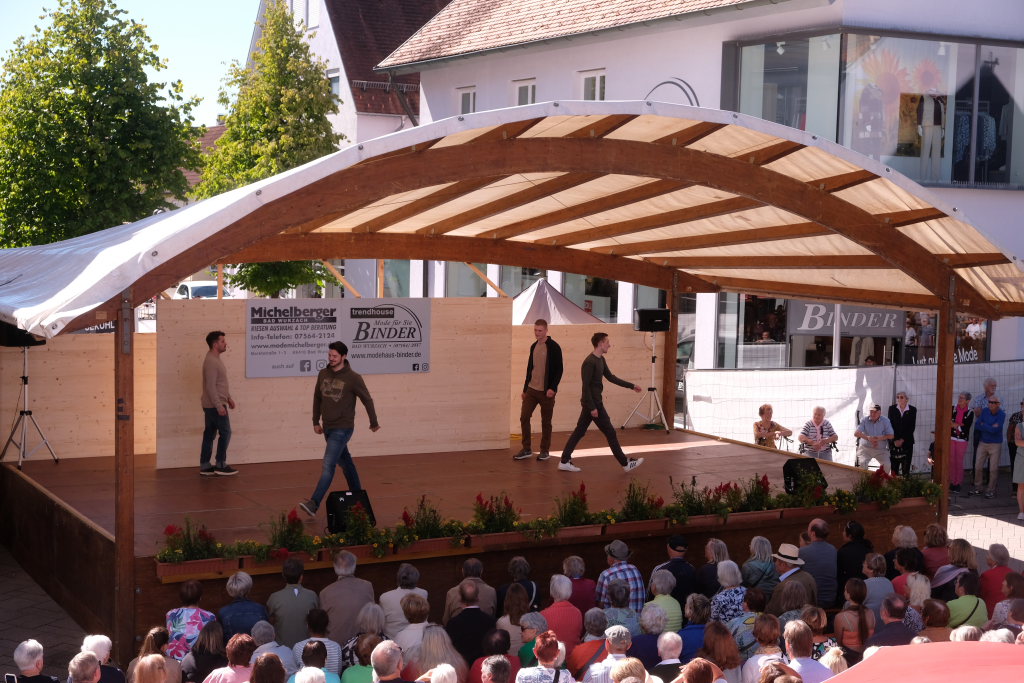 Zweimal wurde am Sonntag auf der Bühne an der Ecke Marktstraße / Herrenstraße die Modenschau von Michelberger und Binder gezeigt.