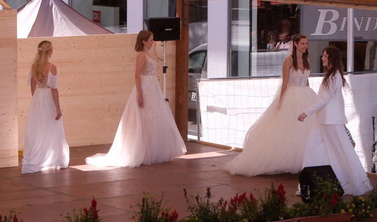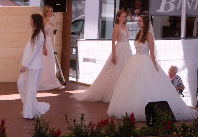 Die Präsentation festlicher Mode ist in jedem Jahr der Höhepunkt einer Stadtfest-Modenschau: Beim großen Finale, für das sich alle in festlicher Mode zeigten, waren auch die aktuellen Brautmodentrends zu sehen.