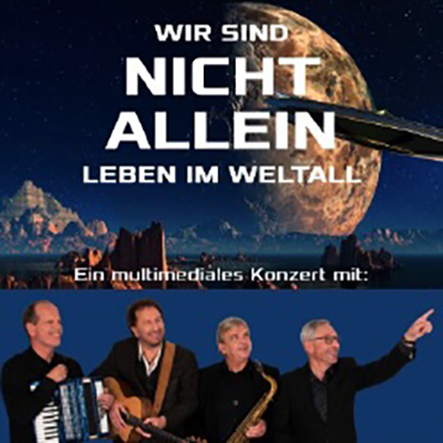 Bitte beachten Sie: Dieses Konzert ist keine Wiederholung jenes Konzertes, das wir vor zwei Jahren zusammen mit den Künstlern veranstalteten. Damals lautete das Thema: „Urknall und Sternenstaub.“ Aufgrund der regen Nachfrage und der begeisterten Rückmeldungen wird es nun ein neues Konzert zum Thema „Wir sind nicht allein – Leben im Weltall“ geben.