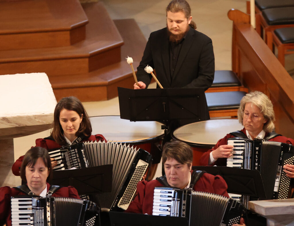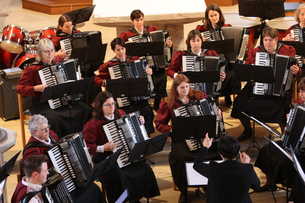 Der Akkordeonspielkreis Mettenberg (Leitung Ursula Glöggler-Sproll) brachte die ganze Klangvielfalt dieser Instrumente zur Geltung. Kompositionen von Händel, Bach und Elgar waren in einem ungewohnten Orchesterklang sehr interessant zu hören.