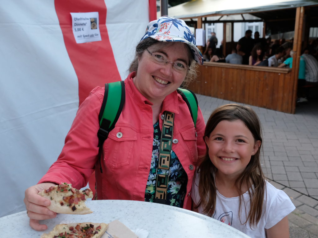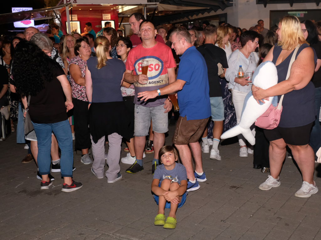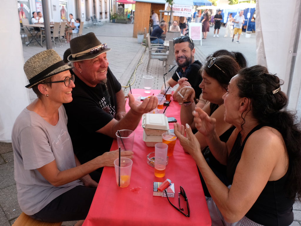 Ob beim Fanfarenzug, bei den Schalmeien mit ihrer nach den Arnacher Kässpatzen zweit- berühmtesten Spezialität des Stadtfestes, ihren Krautspatzen, oder dem Fleisch- und Wurstspezialitäten der Haidgauer Musikkapelle, der Feuerwehr mit ihren Pinchos oder den süßen Verführungen der Ziegelbacher Landfrauen, hungrig musste kein Besucher bleiben. Denn neben den Vereinen gab es ja noch die „Profis“ wie die Metzgerei Wegmann, der Seelenpeter oder die Dönerstände von Helmuts Palast und dem ehemaligen Bistro Butterfly. Und das Eiscafé Miraval mit seinen Eisspezialitäten, Robert Vogt mit seinem Soft- und Slush-Eis oder Claudia Sigg mit ihrer Crepes-Schaubäckerei sorgten für die süße Kalorienzufuhr.