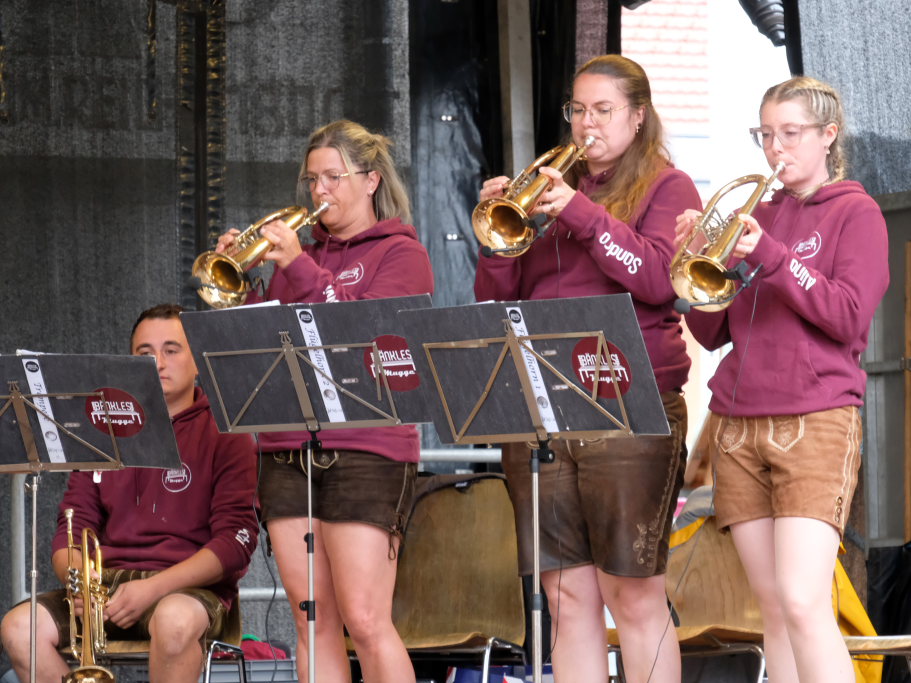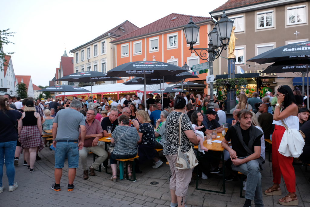 Es ist in all den Jahren seit 1978 zur Tradition geworden, dass die Stadtkapelle zur Eröffnung des Festes mit dem Fassanstich nicht nur „Ein Prosit der Gemütlichkeit“ spielt, sondern gut zwei Stunden die Besucher mit Perlen der Blasmusik bei Laune hält und dabei viele Nachwuchsmusikerinnen und Nachwuchsmusiker erste Bühnenerfahrung sammeln lässt.