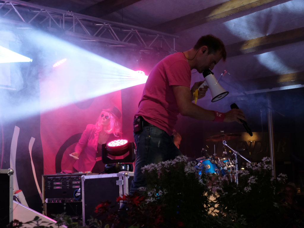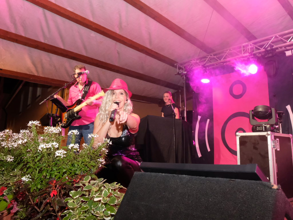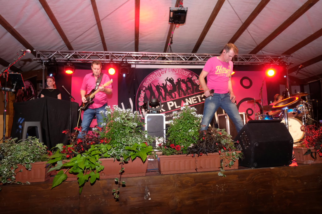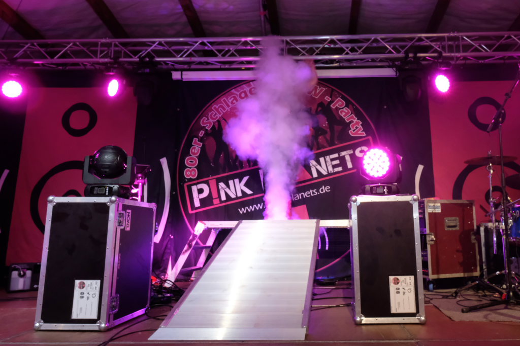 Dann übernahmen die Musiker (bzw. deren Techniker) der Band „Pink Planet“ aus Sigmarszell bei Lindau die Bühne, deren riesige Bass-Boxen bereits seit dem Morgen vor der Bühne abgestellt waren. Bereits beim Einspielen und beim Soundcheck bekamen die Besucher der umliegenden Stände und Hütten einen Vorgeschmack auf das, was da noch kommen sollte: Es wurde laut! Aber das kannten diese schon von früheren Auftritten der Band beim Stadtfest; deren Sängerin Maria stammt ursprünglich aus der Kurstadt. Bis tief in die Nacht sorgte „Pink Planet“ mit seiner ausgefeilten Lichtshow und ihrem Mix aus 80er-Jahre-Rock und Neue Deutsche Welle für ausgelassene Stimmung bei den Besuchern.