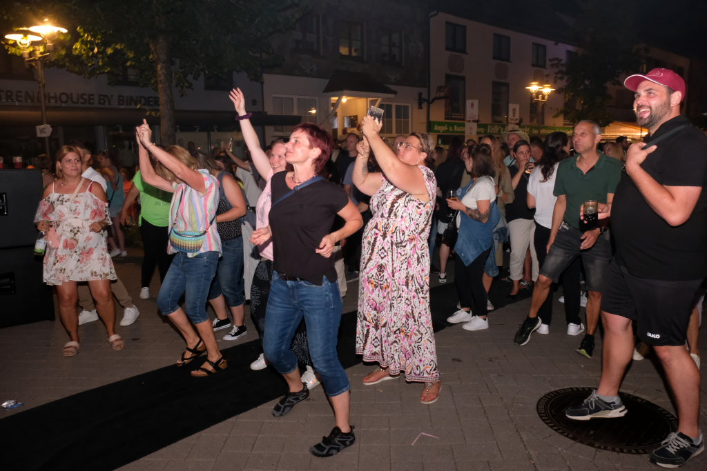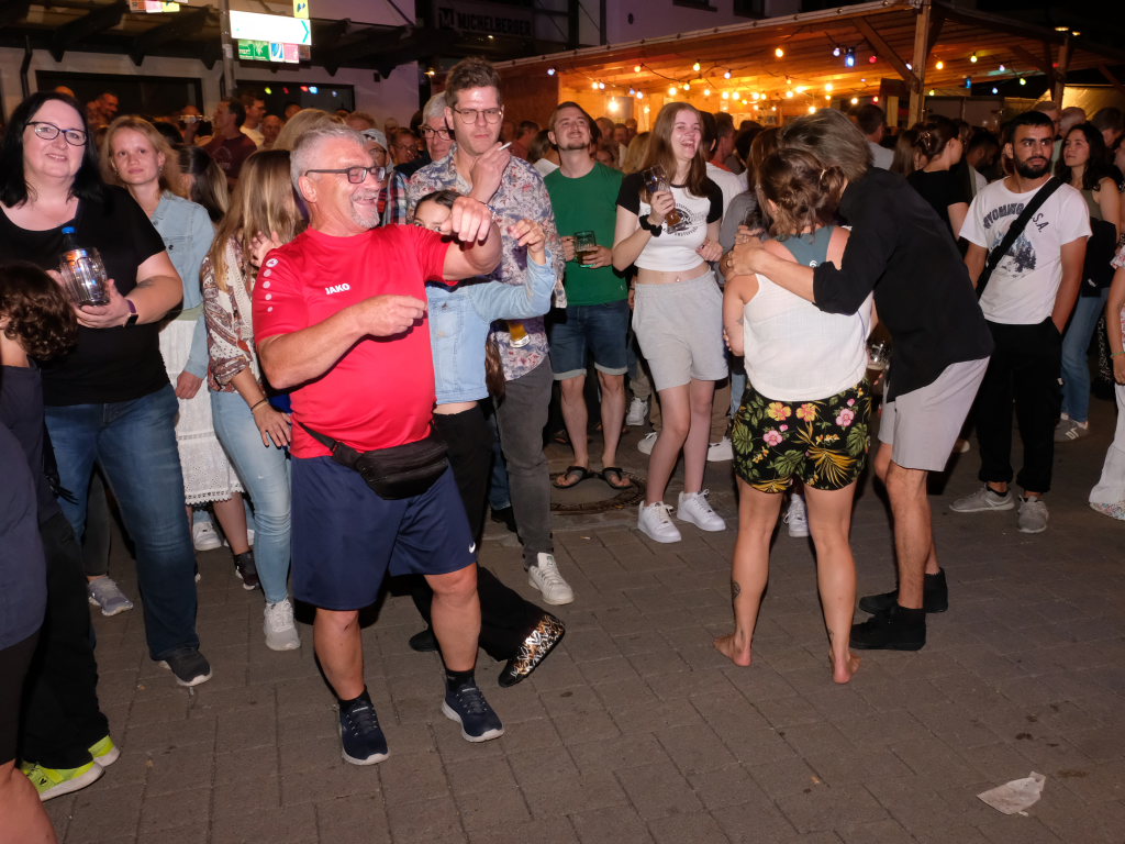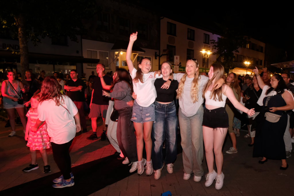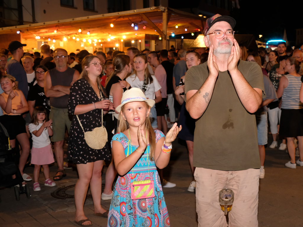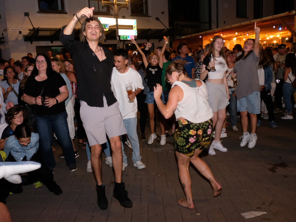 Dann übernahmen die Musiker (bzw. deren Techniker) der Band „Pink Planet“ aus Sigmarszell bei Lindau die Bühne, deren riesige Bass-Boxen bereits seit dem Morgen vor der Bühne abgestellt waren. Bereits beim Einspielen und beim Soundcheck bekamen die Besucher der umliegenden Stände und Hütten einen Vorgeschmack auf das, was da noch kommen sollte: Es wurde laut! Aber das kannten diese schon von früheren Auftritten der Band beim Stadtfest; deren Sängerin Maria stammt ursprünglich aus der Kurstadt. Bis tief in die Nacht sorgte „Pink Planet“ mit seiner ausgefeilten Lichtshow und ihrem Mix aus 80er-Jahre-Rock und Neue Deutsche Welle für ausgelassene Stimmung bei den Besuchern.