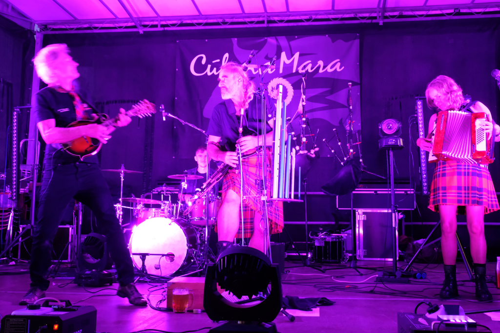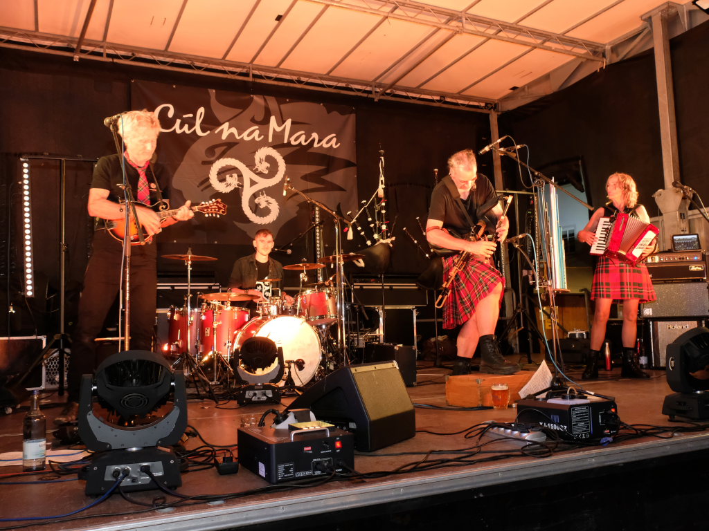 Zurück zur Musik: Etwas besonderes war der Auftritt der Celtic-Folk-Rock Band „Cul na mara“ aus Aulendorf am Samstagabend. Die inzwischen vielfach preisgekrönte Band ist hierzulande keine Unbekannte mehr, hatte sie doch vor gut einem Jahr in der Festhalle in Hauerz ein Benefizkonzert gegeben.