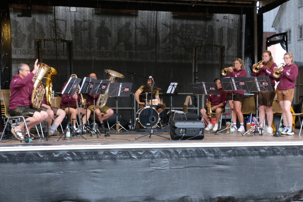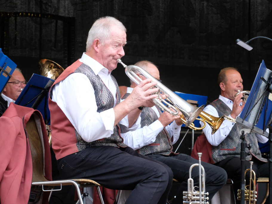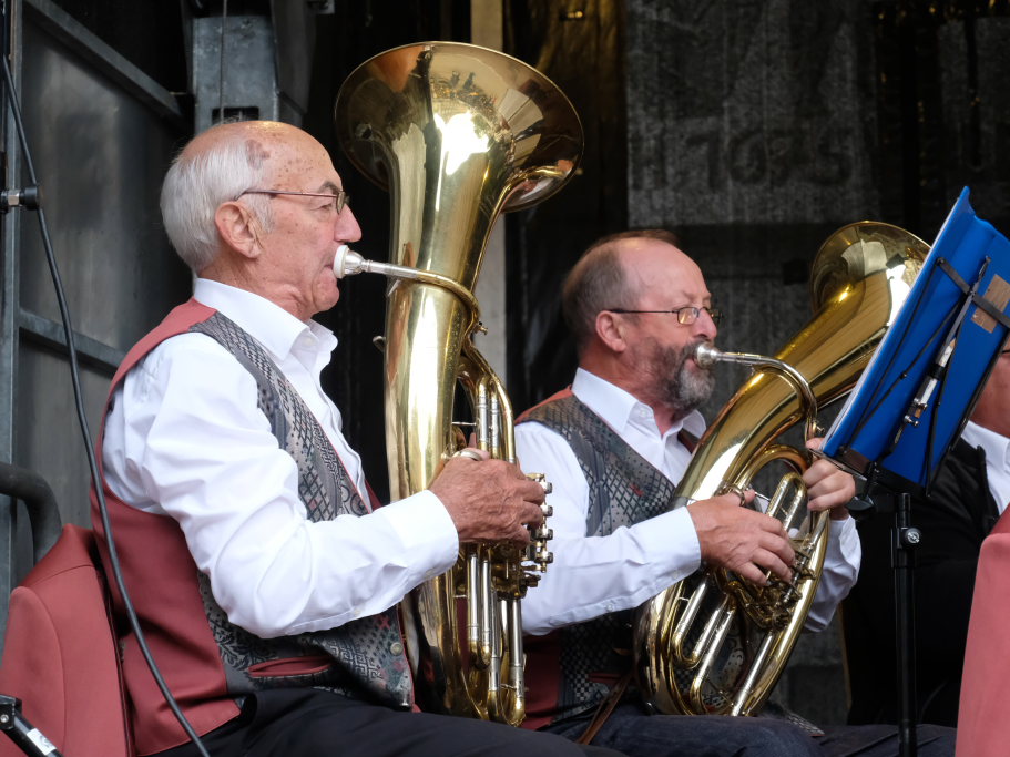 Zur schweißtreibenden Angelegenheit wurde für die Musiker des Musikvereins Seibranz deren Auftritt an diesem Samstagnachmittag, an dem kein noch so kleines Wölkchen die gnadenlos auf das Bühnendach brennende Sonne linderte. Und dennoch minderte es deren Spaß am Spielen in keinster Weise.