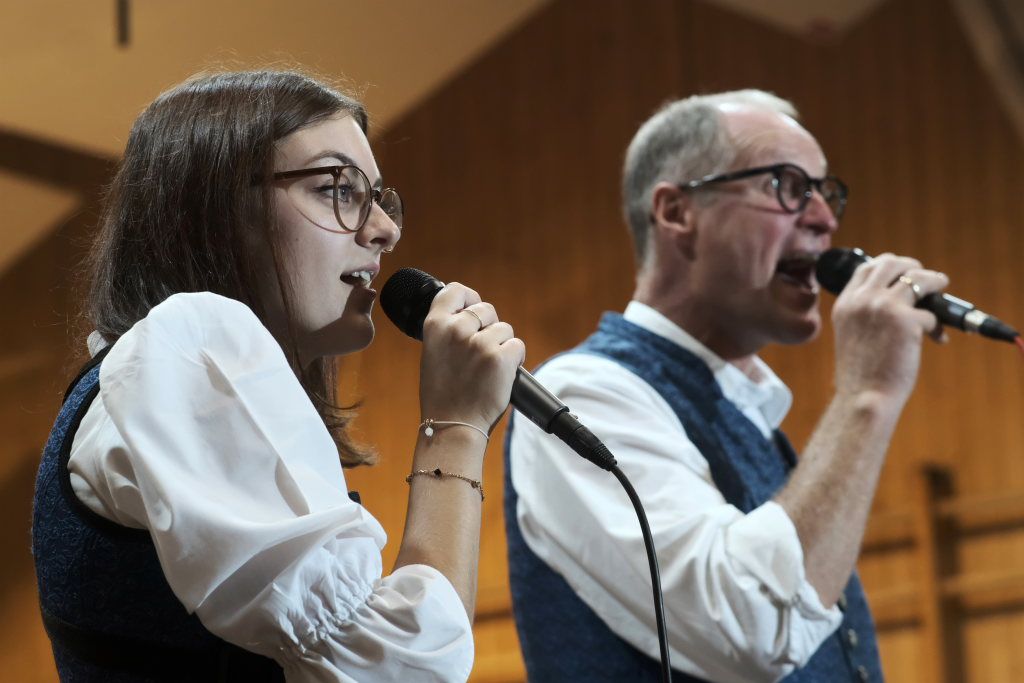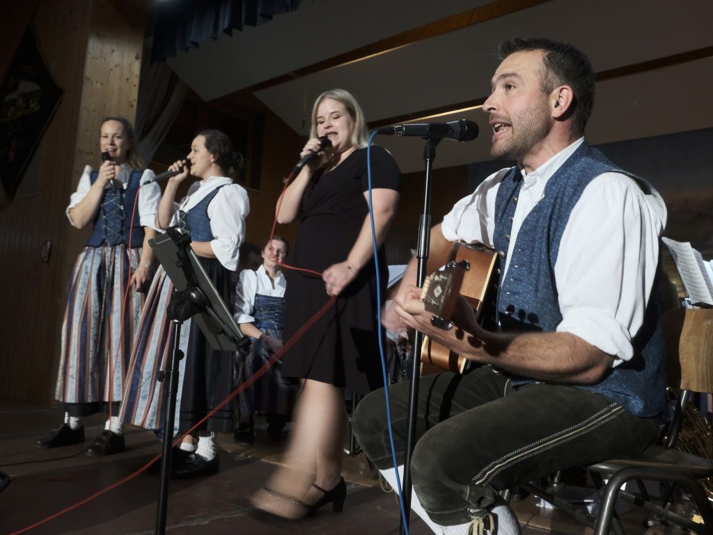 Die Arnacher Musikanten, für die die Bühne der Arnacher Halle schon längst zu klein ist, haben mit Berthold Hiemer einen musikalischen Leiter, der genau zu den rund 70 aktiven Musikern passt: Auf der Bühne erweist er sich als wahres Multi(tasking)talent: die Musiker im Zaum zu halten und gleichzeitig als Sänger zu performen stellt für den Bühnenprofi kein Problem dar. Aber damit der „Chef“ nicht die gesamte Sangesarbeit alleine machen muss, hat er inzwischen eine ganze Reihe hervorragender Sängerinnen und Sänger an seiner Seite: Lisa Gottschling und Stefan Braun sind schon alte Hasen, aber inzwischen haben sich weitere Sängerinnen und Sänger dazugesellt, die damit auch das Spektrum der Musikstücke, die beim Stimmungsabend auf die Set-Liste gesetzt werden können, enorm erweitert hat.