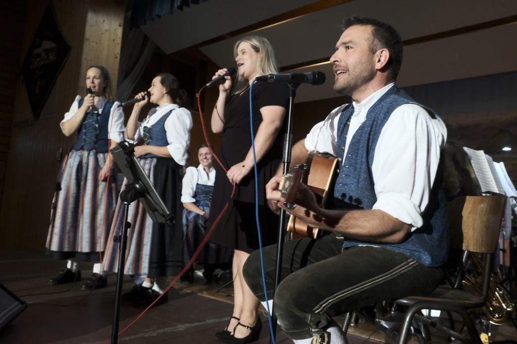 Die Arnacher Musikanten, für die die Bühne der Arnacher Halle schon längst zu klein ist, haben mit Berthold Hiemer einen musikalischen Leiter, der genau zu den rund 70 aktiven Musikern passt: Auf der Bühne erweist er sich als wahres Multi(tasking)talent: die Musiker im Zaum zu halten und gleichzeitig als Sänger zu performen stellt für den Bühnenprofi kein Problem dar. Aber damit der „Chef“ nicht die gesamte Sangesarbeit alleine machen muss, hat er inzwischen eine ganze Reihe hervorragender Sängerinnen und Sänger an seiner Seite: Lisa Gottschling und Stefan Braun sind schon alte Hasen, aber inzwischen haben sich weitere Sängerinnen und Sänger dazugesellt, die damit auch das Spektrum der Musikstücke, die beim Stimmungsabend auf die Set-Liste gesetzt werden können, enorm erweitert hat.