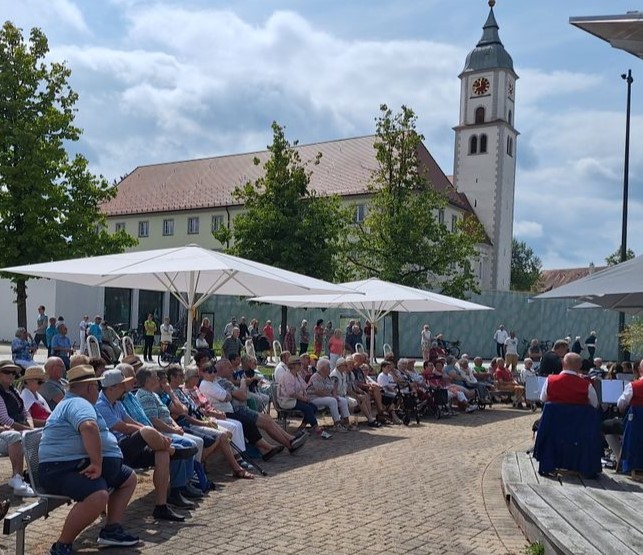 Bad Wurzach – Eine schöne Tradition in Bad Wurzach sind die sonntäglichen Kurkonzerte. Aus den Orten der Gemeinde spielen abwechselnd die Musikkapellen auf. Am vergangenen Sonntag (4.8.) war die Musikkapelle Hauerz dran. Der Teilort hat rund 1100 Einwohner und stellte ein Blasorchester von 50 Mitgliedern auf die Bühne der Konzertmuschel am Rand des Kurparks. Zahlreiche Zuhörer und Zuhörerinnen schätzen die Musik und die innige Beziehung des Zentralorts zu den Teilgemeinden Bad Wurzachs. So wird das geistig-kulturelle Brauchtum hochgehalten.