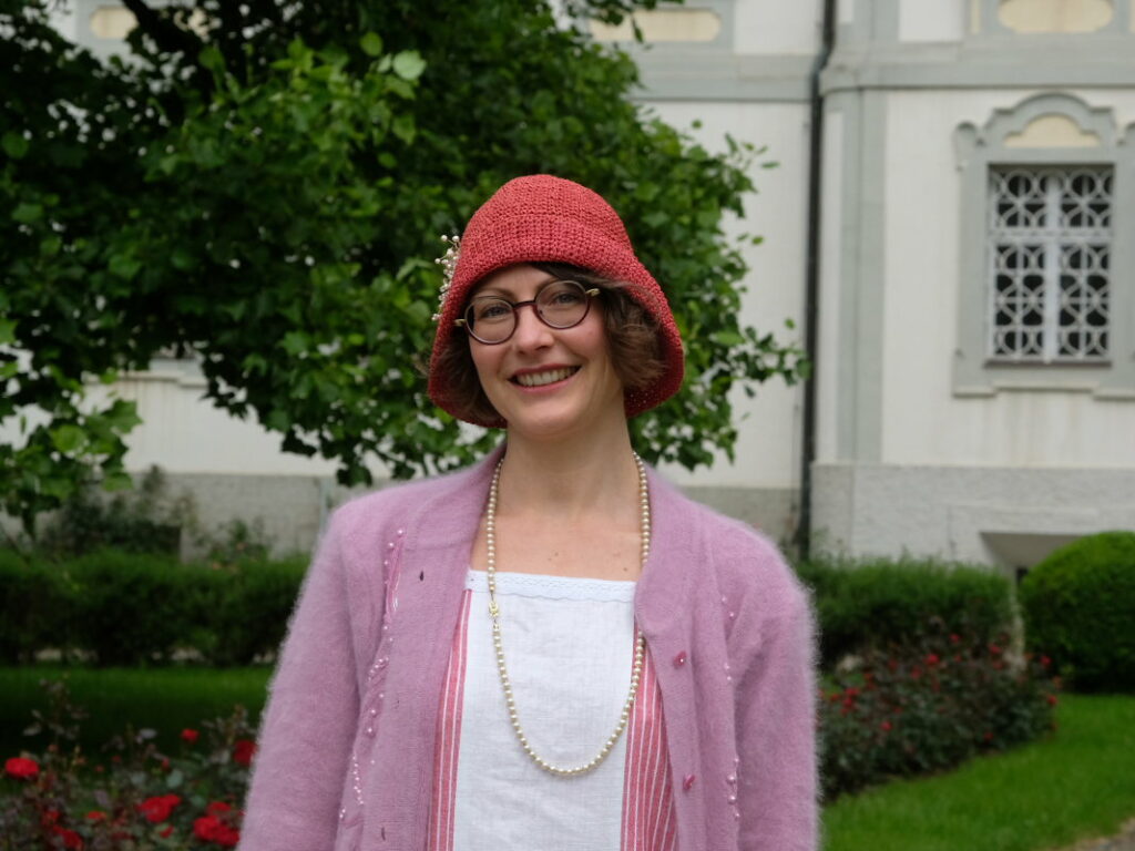 Hüte runden nach ihrem ästhetischen Empfinden ein Outfit erst richtig ab. Seit sie bei einem Workshop in Wuppertal die Basics gelernt hat, wie man aus im Wortsinne „alten Hüten“ mit kleinen Accessoires viel herausholen kann, macht sie, die ihre Hut-Modelle vom Flohmarkt oder aus Nachlässen bezieht, dies mit großer Hingabe. Deshalb führte sie einer ihrer ersten Ausflüge in der neuen Heimat nach Lindenberg, wo sie dann dem dortigen Hutmuseum einen Besuch abstattete.