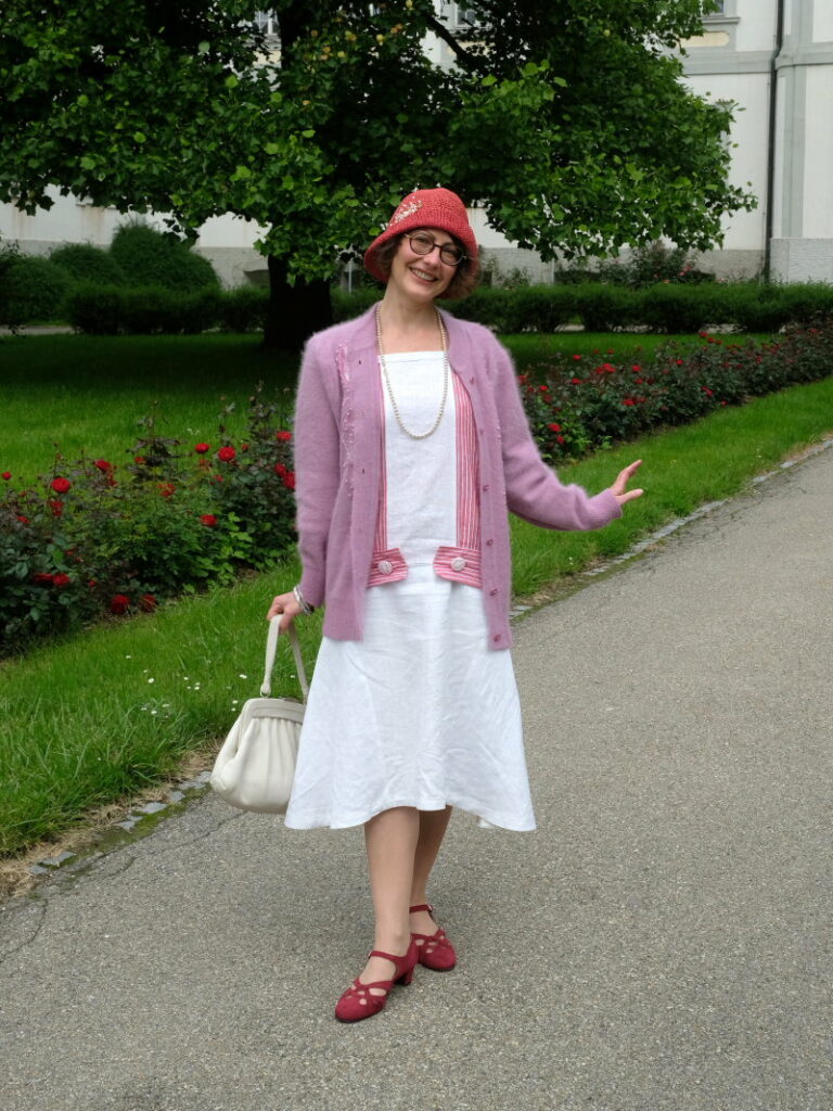 Bei ihrem größten Hobby – neben ihrem Garten – nämlich dem Schneidern, ist sie ein wenig familiär vorbelastet: die Affinität dazu hatte ihre Mutter ihr als Kind mitgegeben. Nach Beendigung ihres Studiums ging es für sie damit so richtig los. Mode ist für Nicole Schmitz-Bernt auch in jeder Epoche ein Spiegelbild der politischen Gesellschaft. Ihr großer Favorit sind die zwanziger Jahre, die modegeschichtlich ein wenig geteilt waren. Weil sie sich sehr viel mit Modegeschichte befasst, ist ihr auch wichtig, die politischen Zusammenhänge zu verstehen. „Schneidern ist für mich auch eine kulturelle Fähigkeit, die verloren zu gehen droht. Und sie war und ist auch lebensnotwendig: Ohne das Umarbeiten etwa von Fellen zu Kleidung hätten die Menschen die Eiszeit nicht überlebt.“
