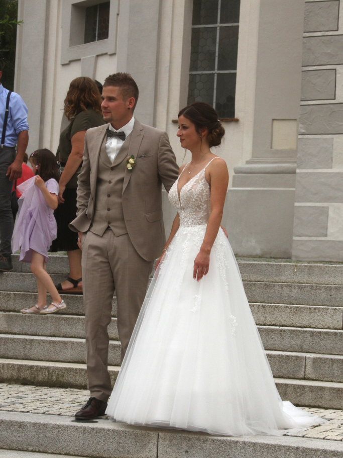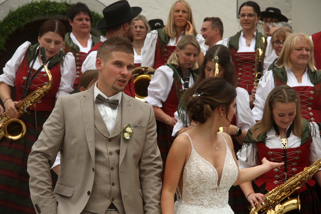 Braut und Bräutigam stammen beide aus Dietmanns und sind seit vielen Jahren Mitglieder beim Musikverein Dietmanns; deswegen war es natürlich selbstverständlich, dass die Musikanten des Musikvereines nach der Trauung noch vor der Kirche für sie ein Ständchen spielte.