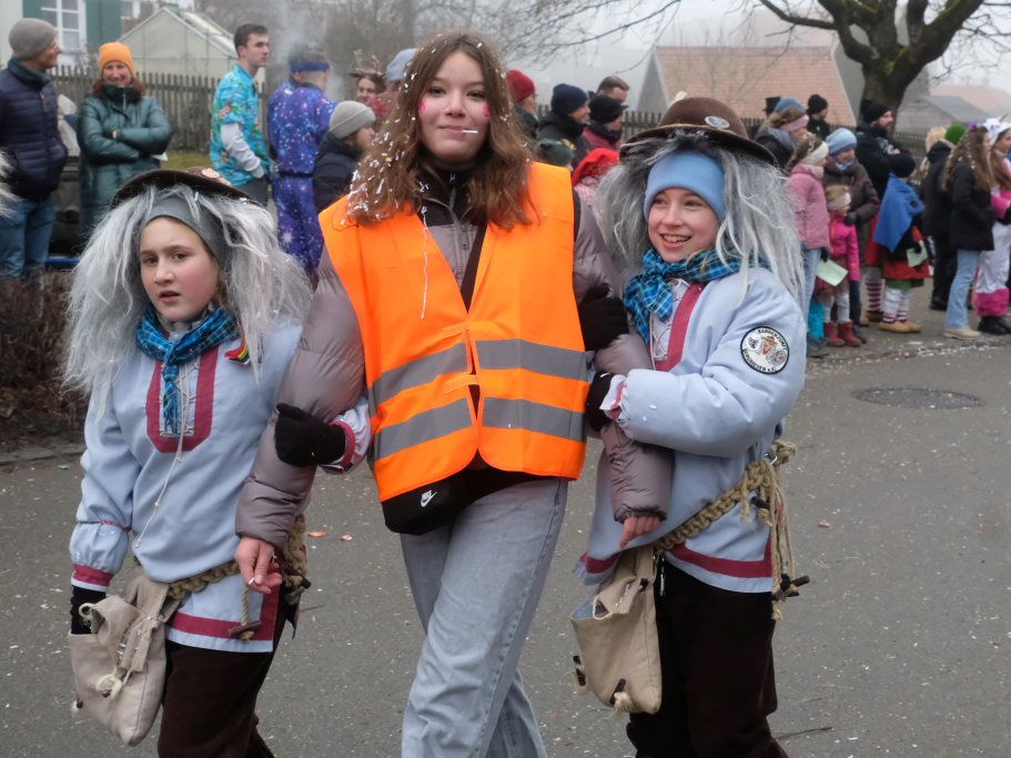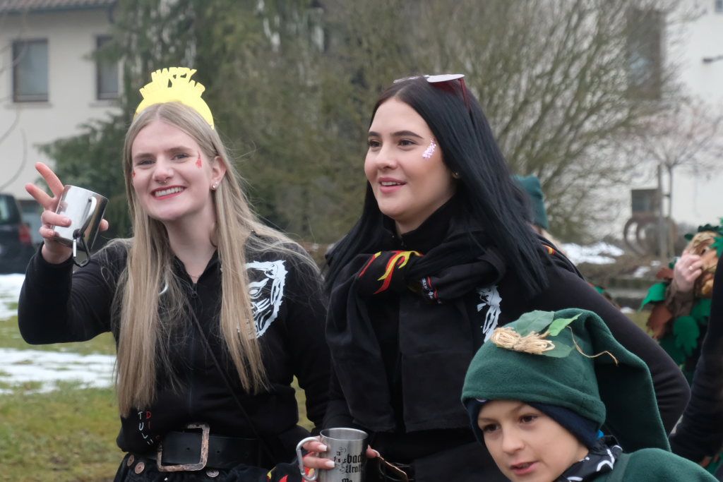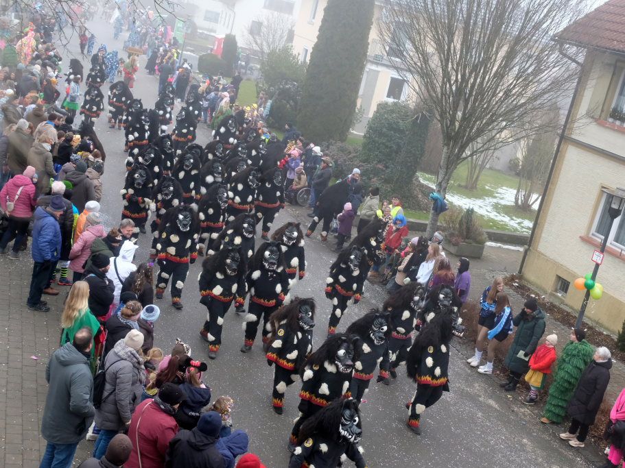 Und es gab für das „Dreamteam“ viel zu kommentieren: Etwa die riesige Narrenschar, die sich vom benachbarten Eberhardzell mit allen Masken in das kleine Dorf am Ellbach aufgemacht hatte. Egal ob schwarze Katz, Hansel oder Neideck Hexe, alle waren sie gekommen um mit den Ellwangern deren Straßenfasnet zu feiern.