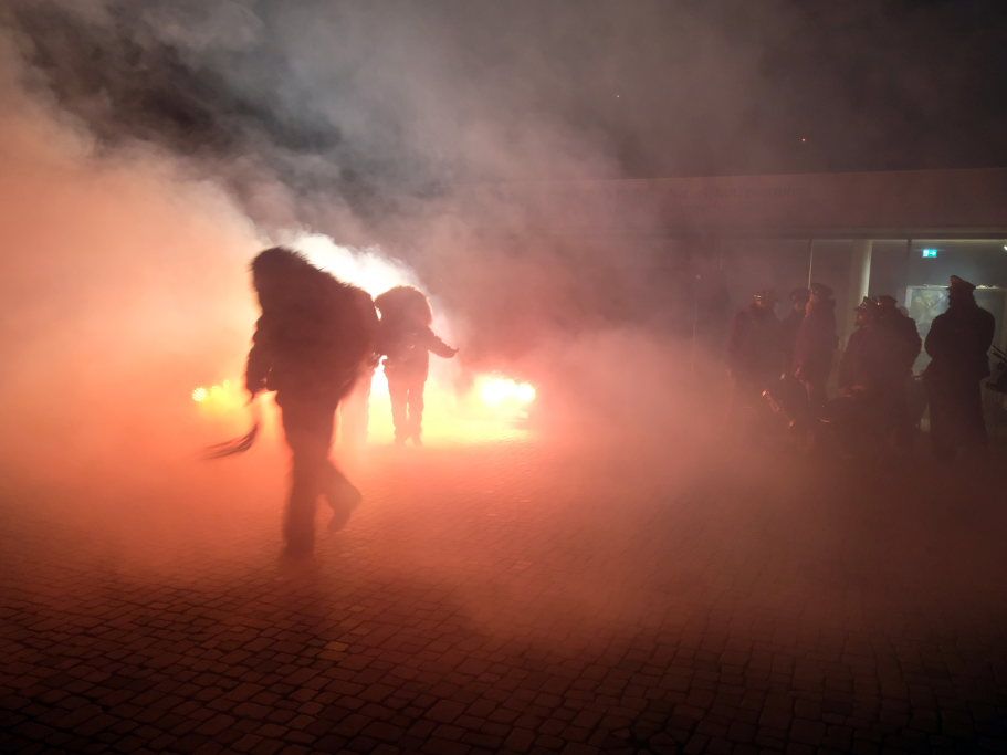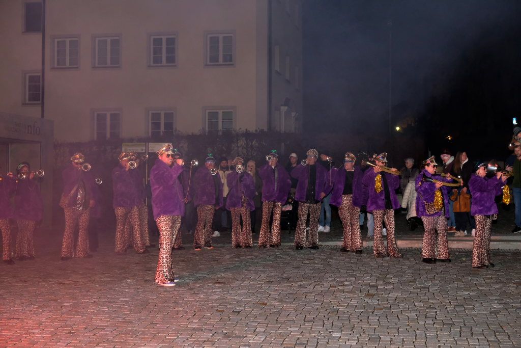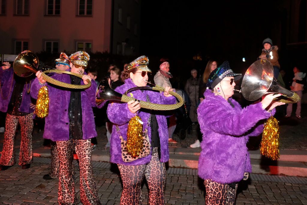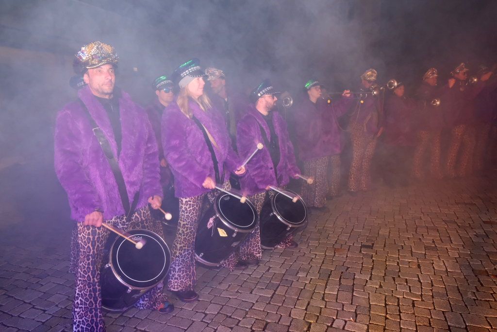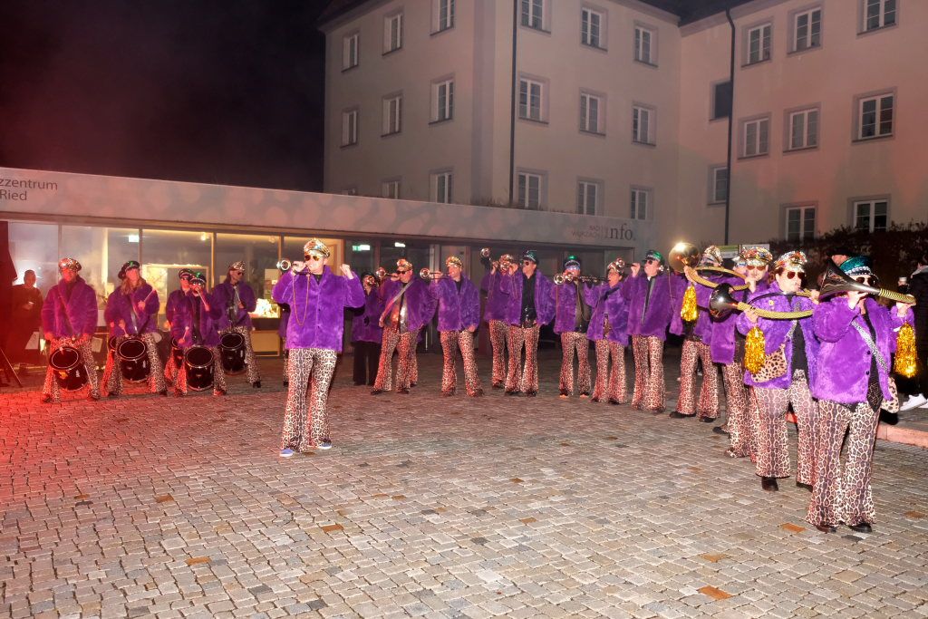 Bei einigen fetzigen Musikstücken des Fanfarenzuges, der sich in seinen Leopardenhosen und lila Felljacken sichtlich wohlfühlte, wurde das Gschell von Riedmeckeler und Muetes noch „entstaubt“ und die Hästräger brachten sich damit für die neue Fasnetsaison in Stimmung, die dieses Mal am Fasnetssonntag (15. Februar) mit der Jubiläumsparty einen zusätzlichen Höhepunkt haben wird.