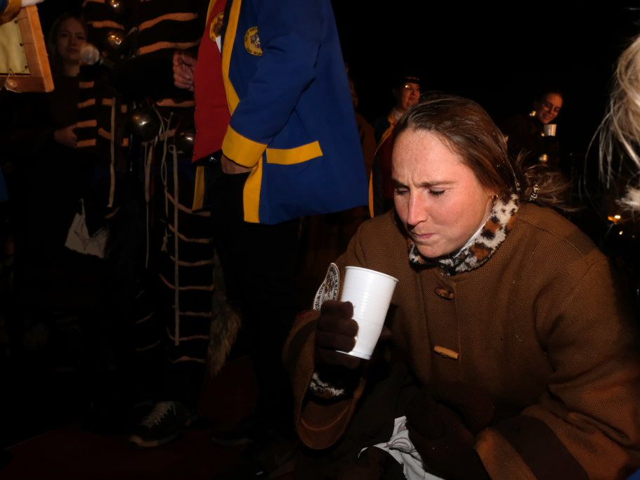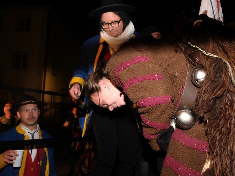 Im Anschluss an die Taufe ließ sich auch noch Bürgermeisterin Alexandra Scherer wie viele andere der Besucher eine Dinnete schmecken, ehe sich die Besucher und Hästräger in die nahegelegenen Wirtschaften zurückzogen.