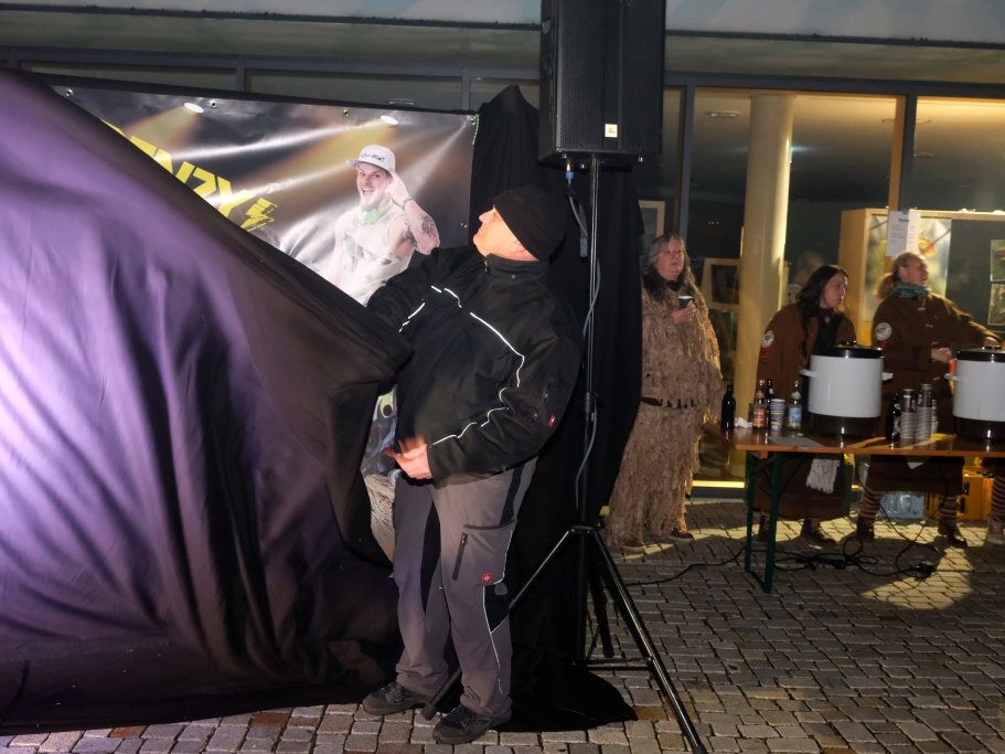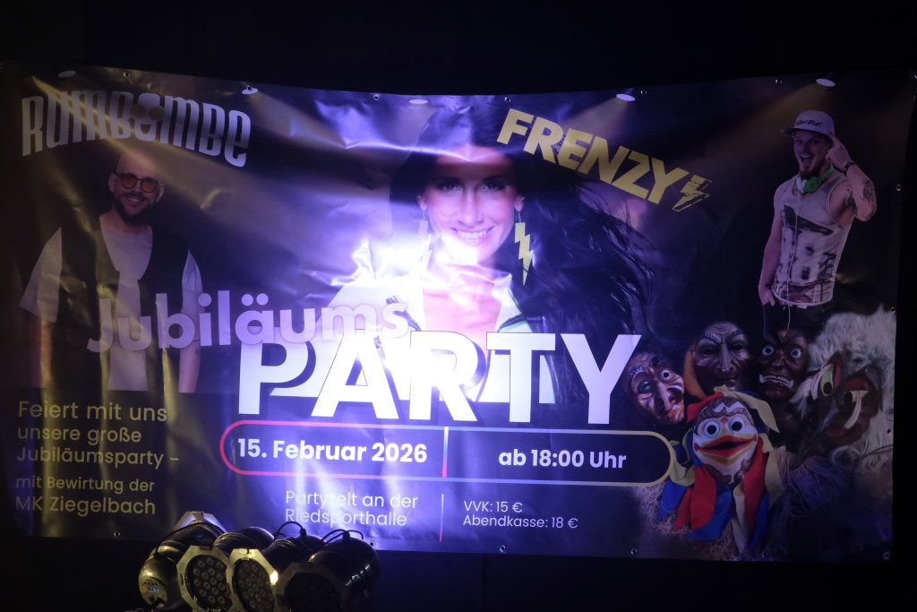 Der Zunftmeister ließ Techniker Markus Fritsch ein Transparent enthüllen, mit dem die Party beworben wird. Top-Act wird an diesem Abend die Sängerin Frenzy sein, die im “Bierkönig” auf “Malle” ihre Karriere startete und dort inzwischen der beliebteste weibliche Act ist.
