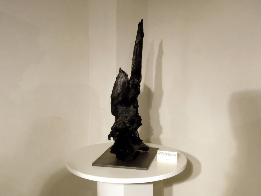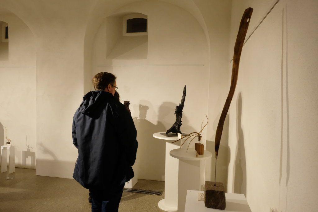Dr. Nicole Jüngling, die seitens des Naturschutzzentrums Wurzacher Ried die Begrüßung der rund 75 Besucher der Vernissage dieser ersten Ausstellung des neuen Jahres übernahm, kennt den Künstler seit vielen Jahren. Die Wechselausstellungen des Naturschutzzentrums (NAZ) seien eine gute Mischung aus Fachausstellungen und der Präsentation von Kunstwerken, sagte die die beim NAZ für Umweltbildung Zuständige zu Beginn ihrer Rede. Bei der Ausstellung von Manfred Wasner sei dies in besonderem Maße gegeben, denn die präsentierten Kunstwerke stammten direkt aus der Natur. „Der Künstler aus Aulendorf bearbeitet seit über 20 Jahren Hölzer. Fundstücke am Wegesrand, die von den meisten von uns kaum beachtet werden. Abgebrochene Äste, Wurzeln, die mit Moos überzogen sind, Hölzer, die vom Wasser angespült oder vom Feuer angekohlt wurden. Sie sind unspektakulär und unscheinbar, doch Manfred Wasner erkennt in ihnen eine Schönheit, die für uns dann erst nach seiner Bearbeitung sichtbar wird. Sorgsam wählt er sie aus, bearbeitet sie oft monatelang, mit Respekt und Bewunderung für diese einstigen Lebewesen. Durch seine Arbeit verleiht er ihnen eine neue Identität und Bedeutung.“