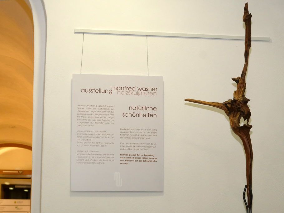 Durch seine Arbeit mit den Hölzern wolle er diese Schönheiten sichtbar machen. Die Namensgebung der 53 ausgestellten Werke, die im übrigen – abgesehen von einer Ausnahme – auch käuflich erworben werden können, erfolge nicht erst am Ende des Arbeitsprozesses, sondern bereits während der Arbeit. Die Namen entsprängen seiner Fantasie. Beeinflusst von täglichen Ereignissen und Erlebnissen, könnten diese auch immer einmal wieder wechseln. Dabei achtet Wasner sehr darauf, dass die Namen seiner Werke nie negativ besetzt klingen. „Denn das hätten sie auch nicht verdient, denn die Bäume und Sträucher, von denen die Holzfragmente stammen, die ich bearbeite, sind unsere Freunde.“ Sie verfolgten keinen Plan, außer zu wachsen und zu erhalten. „Und das eben in perfekter und natürlicher Schönheit.“ Er wolle mit seiner Arbeit keine Botschaft vermitteln, dennoch habe er ein Anliegen: Durch das Sichtbarmachen dessen, was sich hinter der Rinde und der Wurmstichigkeit verbirgt, hofft er darauf, dass sich Spaziergängerinnen und Spaziergänger bei irgendeinem am Wegesrand liegenden Holz daran erinnern mögen, von welchen lebensnotwendigen Schönheiten es stammt. „Bäume wachsen ja meistens recht langsam und über die Zeit entwickeln sie ihre Perfektion. Deshalb: Bitte nehmen sie sich Zeit beim Betrachten der Skulpturen.“