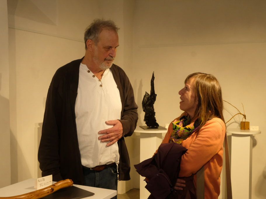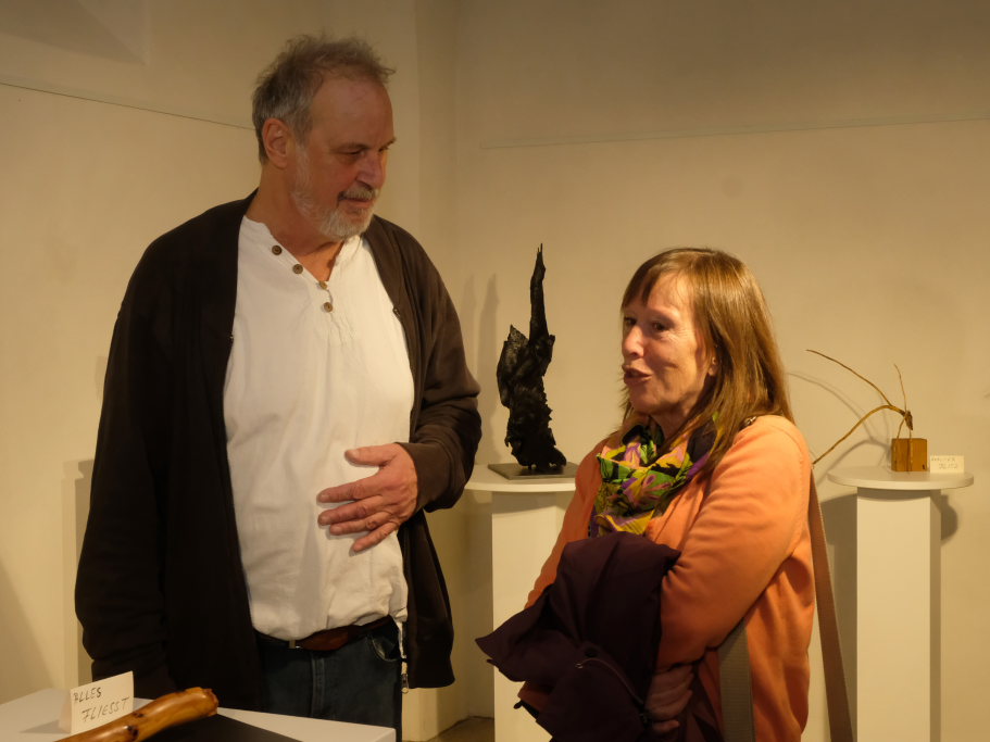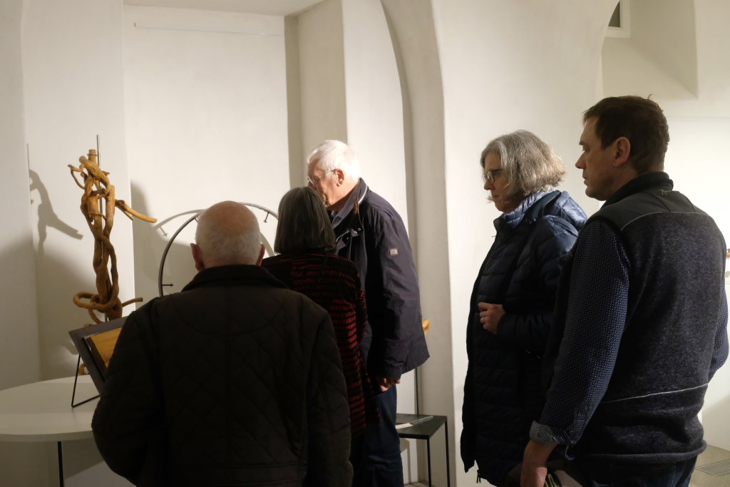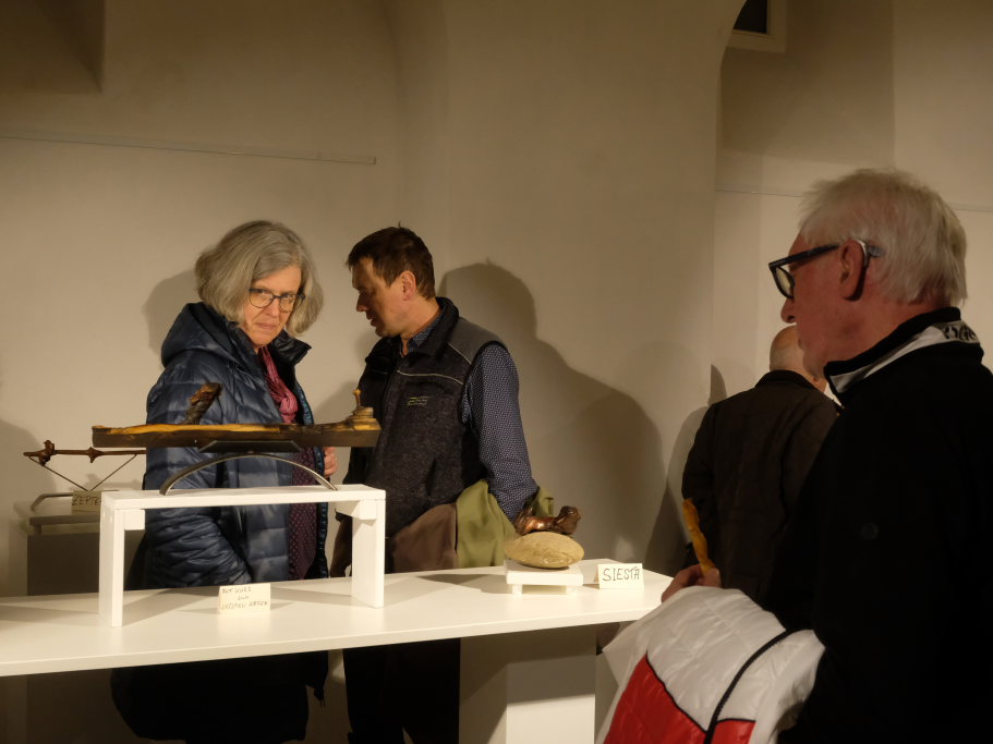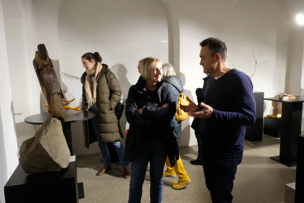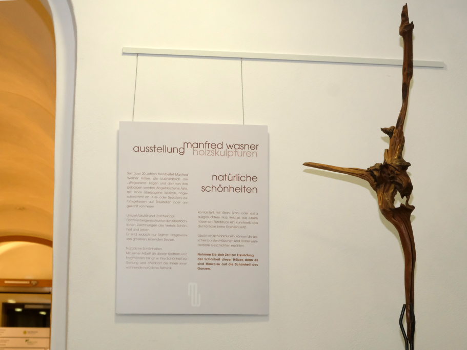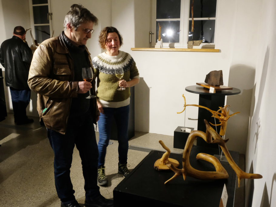 Dr. Nicole Jüngling, die seitens des Naturschutzzentrums Wurzacher Ried die Begrüßung der rund 75 Besucher der Vernissage dieser ersten Ausstellung des neuen Jahres übernahm, kennt den Künstler seit vielen Jahren. Die Wechselausstellungen des Naturschutzzentrums (NAZ) seien eine gute Mischung aus Fachausstellungen und der Präsentation von Kunstwerken, sagte die die beim NAZ für Umweltbildung Zuständige zu Beginn ihrer Rede. Bei der Ausstellung von Manfred Wasner sei dies in besonderem Maße gegeben, denn die präsentierten Kunstwerke stammten direkt aus der Natur. „Der Künstler aus Aulendorf bearbeitet seit über 20 Jahren Hölzer. Fundstücke am Wegesrand, die von den meisten von uns kaum beachtet werden. Abgebrochene Äste, Wurzeln, die mit Moos überzogen sind, Hölzer, die vom Wasser angespült oder vom Feuer angekohlt wurden. Sie sind unspektakulär und unscheinbar, doch Manfred Wasner erkennt in ihnen eine Schönheit, die für uns dann erst nach seiner Bearbeitung sichtbar wird. Sorgsam wählt er sie aus, bearbeitet sie oft monatelang, mit Respekt und Bewunderung für diese einstigen Lebewesen. Durch seine Arbeit verleiht er ihnen eine neue Identität und Bedeutung.“