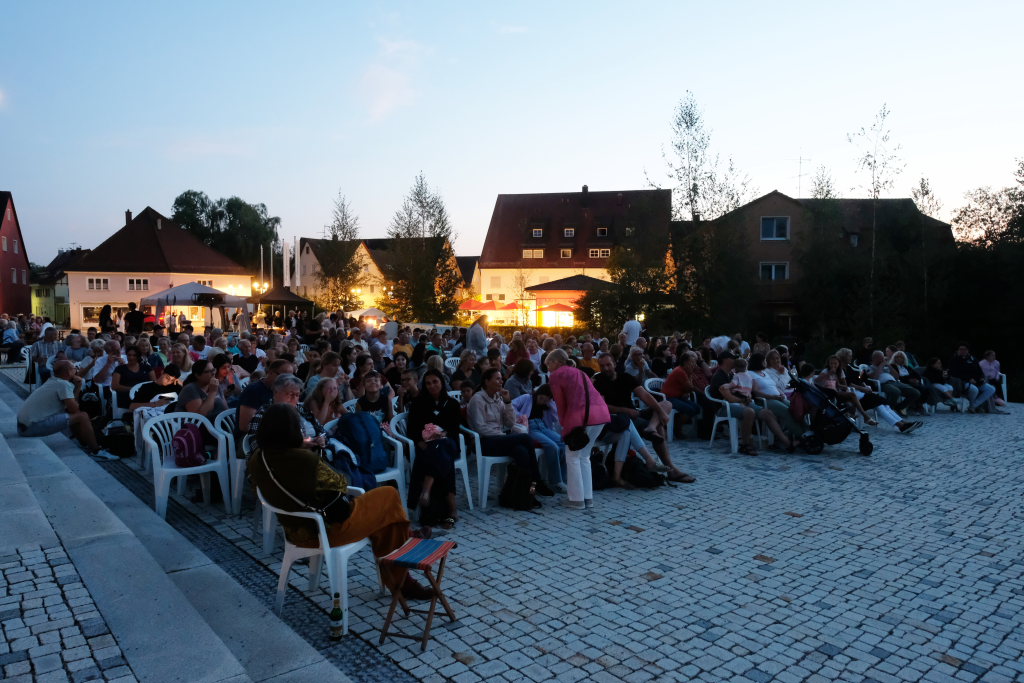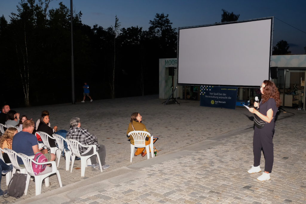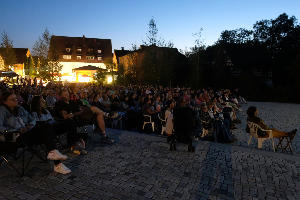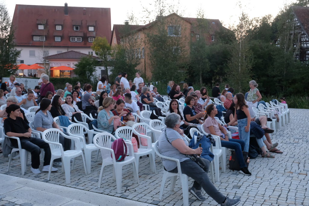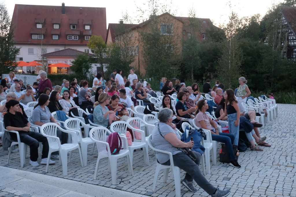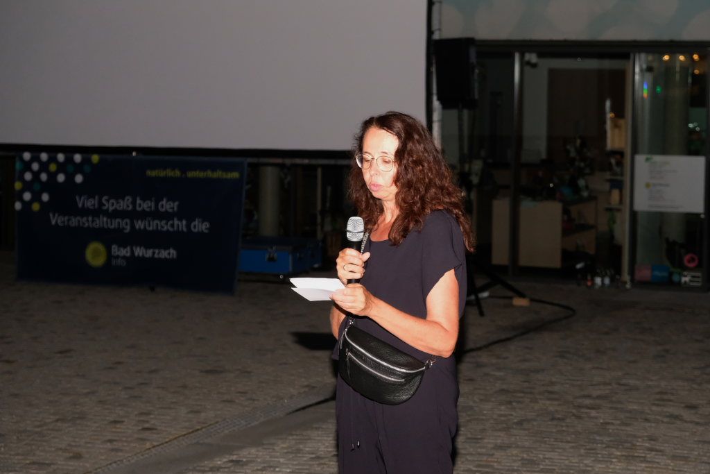 Marianne Stotz von der BWI übernahm kurz nach Einbruch der Dunkelheit die Begrüßung der rund 300 Kinobesucher, die es sich mit Decken und Mückenspray bewaffnet auf dem Klosterplatz bequem gemacht hatten. Sie dankte der Firma ToLiMa aus Bad Waldsee-Haisterkirch, die mit ihrem Technik-Equipment dieses Kinoerlebnis möglich machte. Ein besonderer Dank ging an den Liederkranz CHORioso, der für die Bewirtung der Gäste sorgte. Sie vergaß auch nicht auf die letzte Sommerabendveranstaltung in diesem Jahr hinzuweisen, bei der am 12. September der Stuttgarter Liedermacher Aljosha Konter zu Gast sein wird.