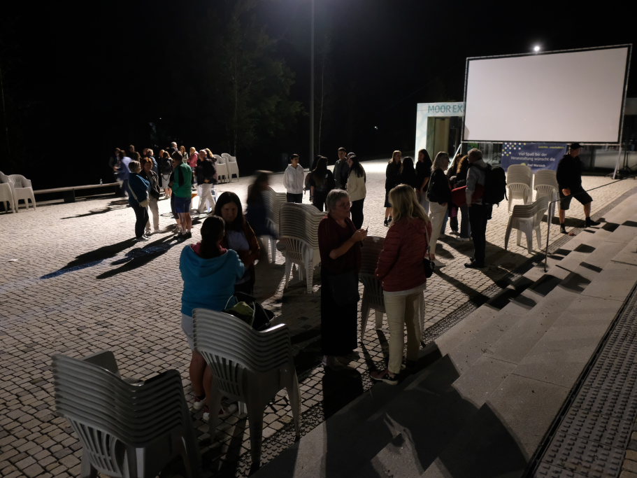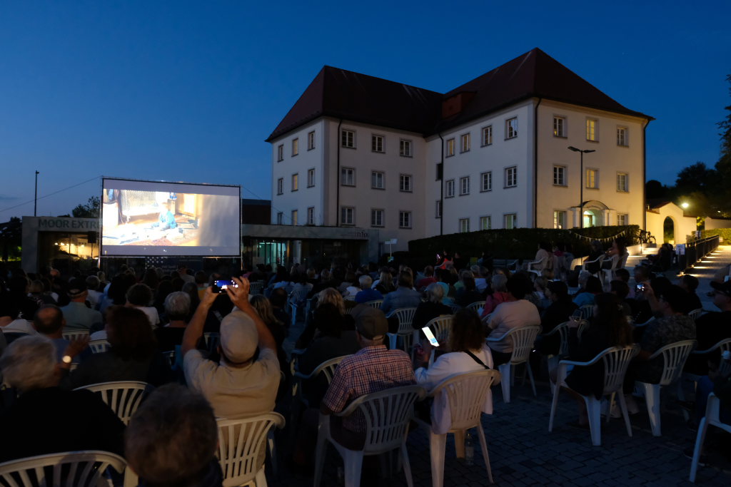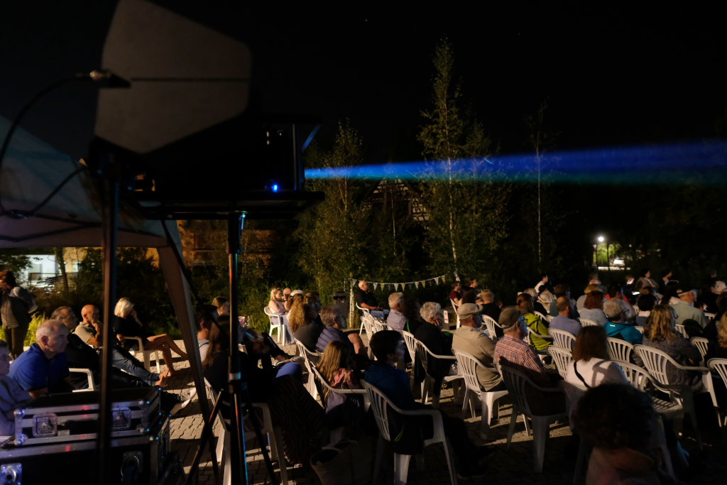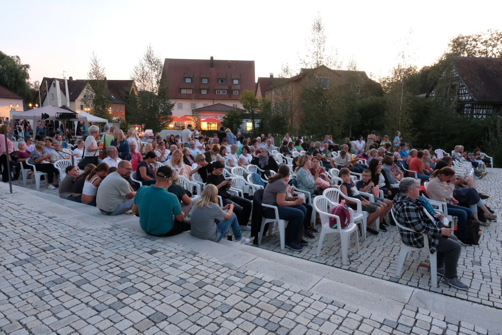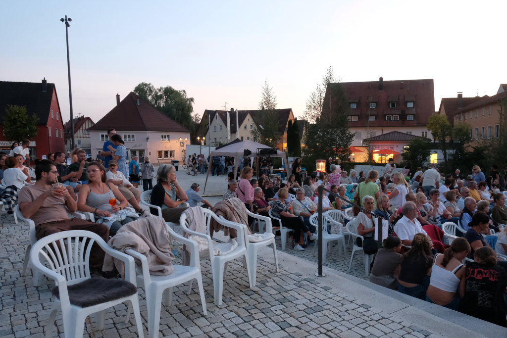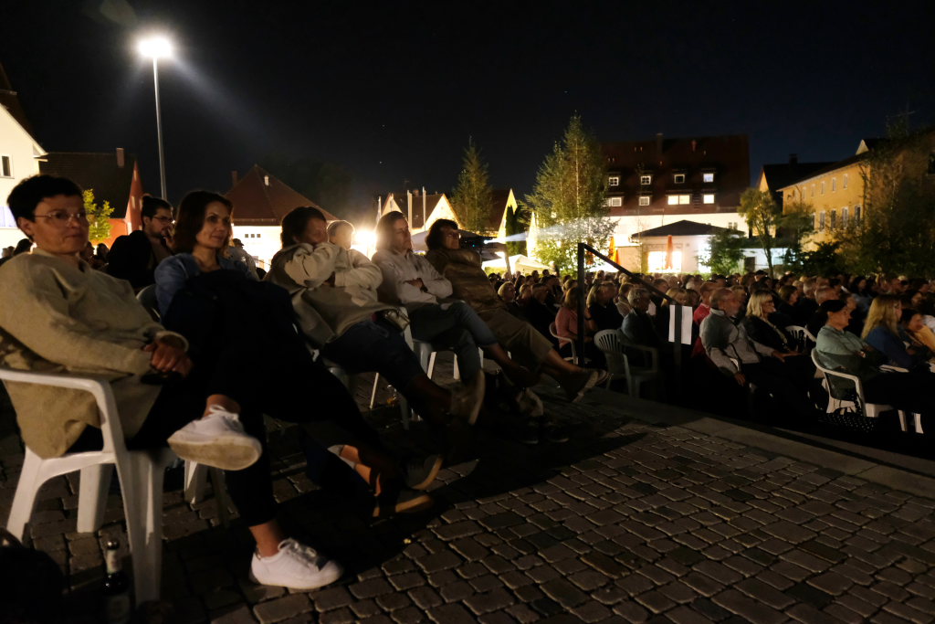 Marianne Stotz von der BWI übernahm kurz nach Einbruch der Dunkelheit die Begrüßung der rund 300 Kinobesucher, die es sich mit Decken und Mückenspray bewaffnet auf dem Klosterplatz bequem gemacht hatten. Sie dankte der Firma ToLiMa aus Bad Waldsee-Haisterkirch, die mit ihrem Technik-Equipment dieses Kinoerlebnis möglich machte. Ein besonderer Dank ging an den Liederkranz CHORioso, der für die Bewirtung der Gäste sorgte. Sie vergaß auch nicht auf die letzte Sommerabendveranstaltung in diesem Jahr hinzuweisen, bei der am 12. September der Stuttgarter Liedermacher Aljosha Konter zu Gast sein wird.