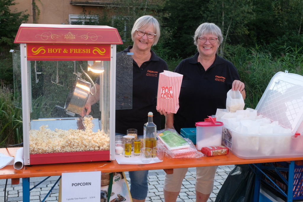 Die Bad Wurzach Info (BWI) lud seit Juni im Rahmen der „Sommerabend“-Reihe Einheimische und Gäste ein, am Musikpavillion gute Musik oder auf dem Klosterplatz großes Kino zu genießen. Beim Kinoabend sorgte CHORioso fürs leibliche Wohl in Form von Gegrilltem, Popcorn und kalten Getränken.