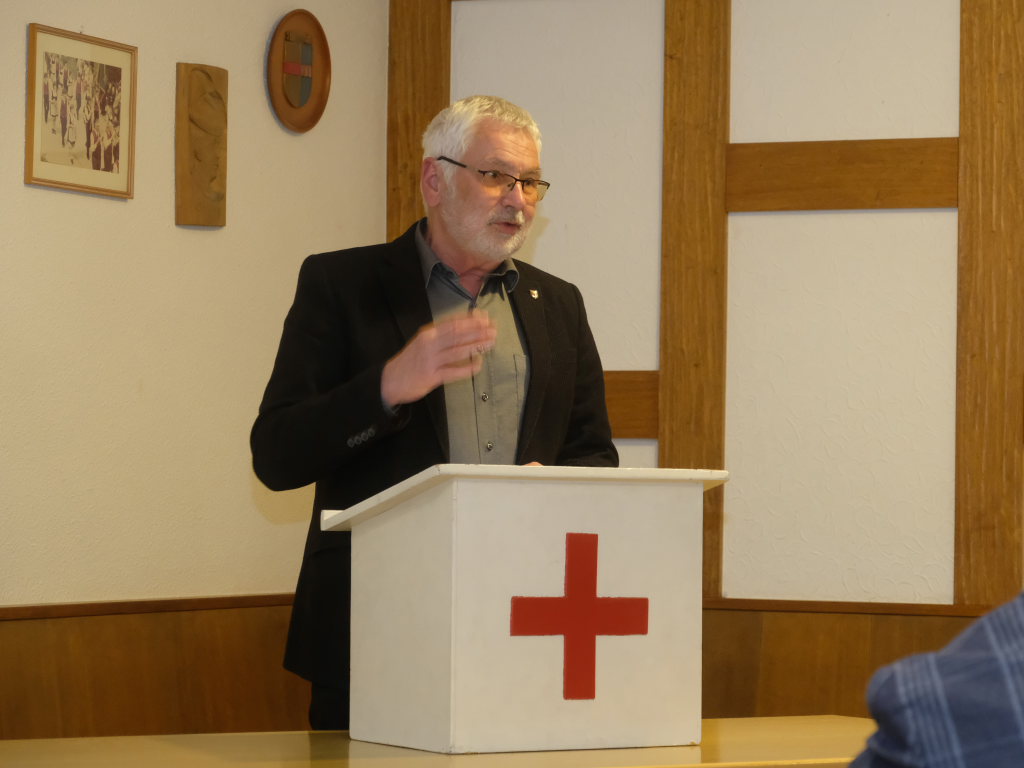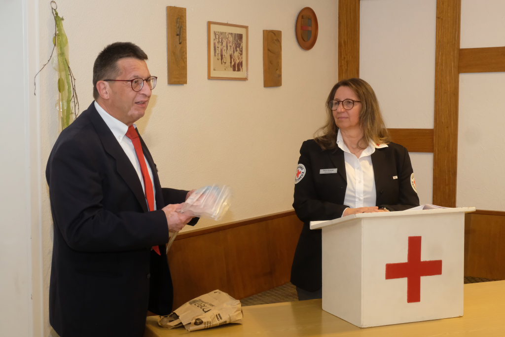 Die Unterschwarzacher Ortsvorsteherin und Gemeinderätin Gisela Brodd sagte in ihrem kurzen Grußwort: „Wenn es Euch nicht gäbe, wären wir arm dran,“ ehe sie die Versammlung die (einstimmige) Entlastung vornehmen ließ. Klaus Schütt, der stellvertretend für die Bürgermeisterin die Versammlung besuchte, fand in seinem Grußwort die Berichte beeindruckend und bestätigte die Einschätzung des JRK als wichtigen Faktor. „Was wäre die Stadt z.B. beim Heiligblutfest oder dem Blaulichttag ohne Sie?“ Er nannte das Engagement des Roten Kreuzes vor Ort „sozialgesellschaftlich wichtig. Ohne ihr Engagement wäre die Stadt ärmer, kälter.“ Sascha Vitas überbrachte die Grüße des Ortsvereines Aitrach. Während der Fasnet machen die Wurzacher in Aitrach Sanitätsdienste, während die Aitracher beim Heiligblutfest in Bad Wurzach helfen. Er persönlich freute sich, dass Melanie Albrecht und Leonie Hofer nun stellvertretende Bereitschaftsleiterinnen sind, die beide ursprünglich aus dem Jugendrotkreuz kommen. Das beweise die Wichtigkeit des JRK bei der Wertevermittlung, vor allem weil dort die Mitglieder von morgen heranwachsen.