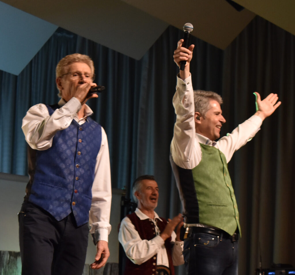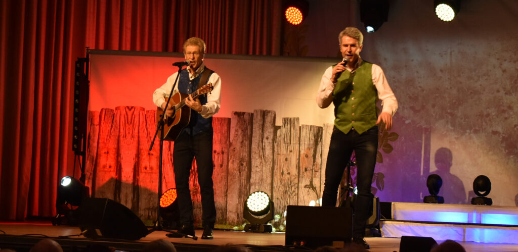 Die Brüder Ulrich und Otto Messner alias Vincent & Fernando, zwei fesche Südtiroler Buam aus der Nähe von Bozen, konnten die Besucher mit ihren harmonisch-klangvollen Stimmen vom ersten Lied an begeistern. Die einstigen Sieger beim Grand Prix der Volksmusik (zweimal auch Platz 2) versprühten ihren Südtiroler Charme, während sie von Liebe, Glaube, Mut und Hoffnung sangen. „Wie eine Brücke zum Himmel“ war nicht nur einer ihrer Songs, sondern entsprach schon fast der Stimmung im Kursaal.