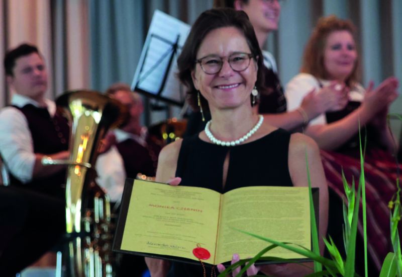 Als Stefanie Jöchle, die Vorstandssprecherin des MV Arnach, den zu Ehrenden zum Rednerpult rief, erhoben sich alle, um dem Jubilar stehende Ovationen zu entbieten.