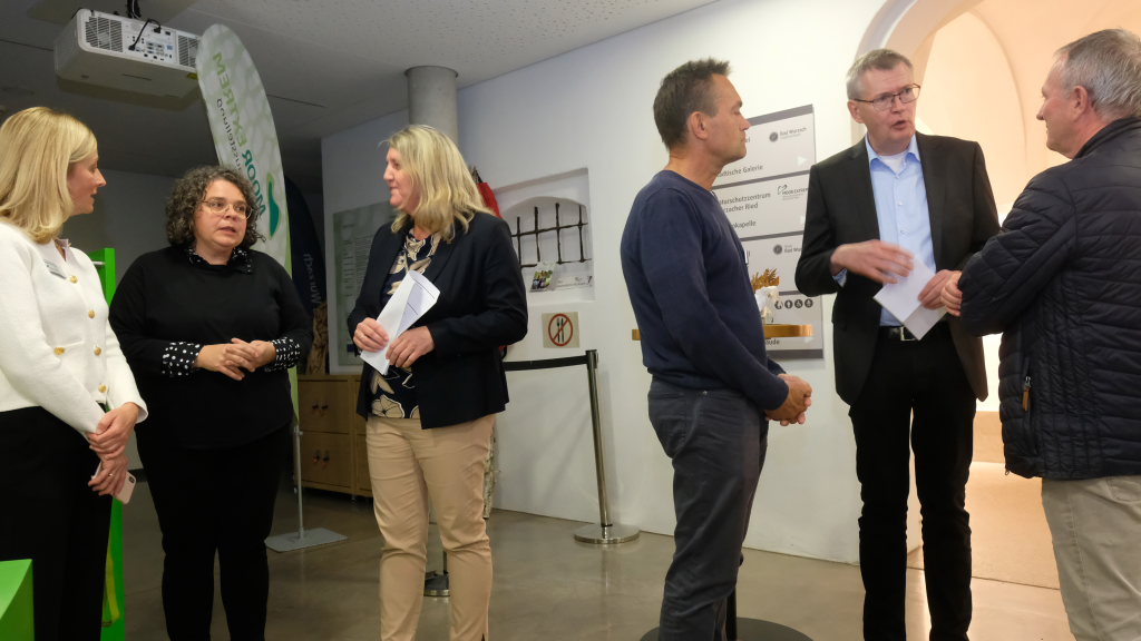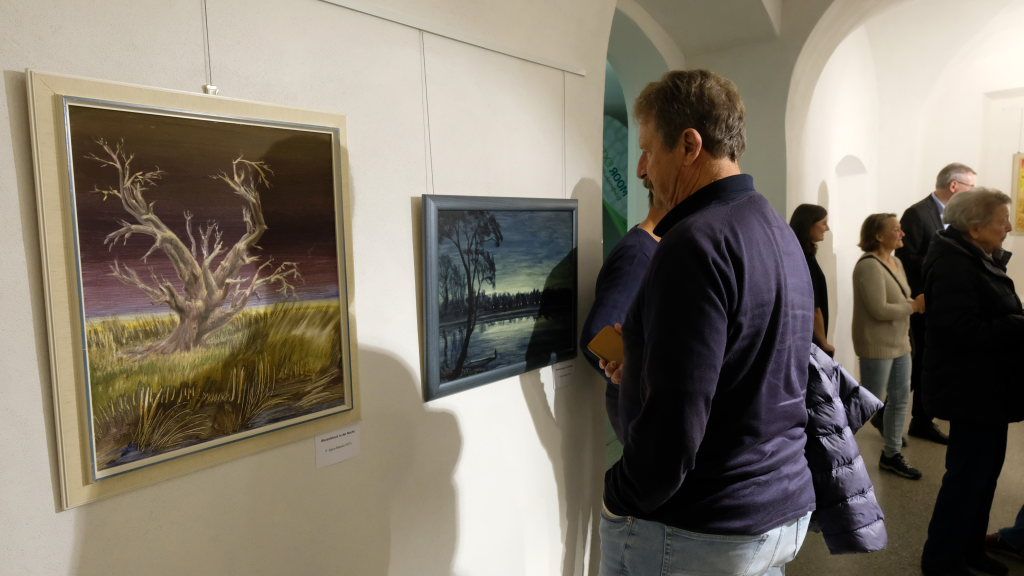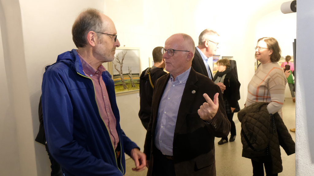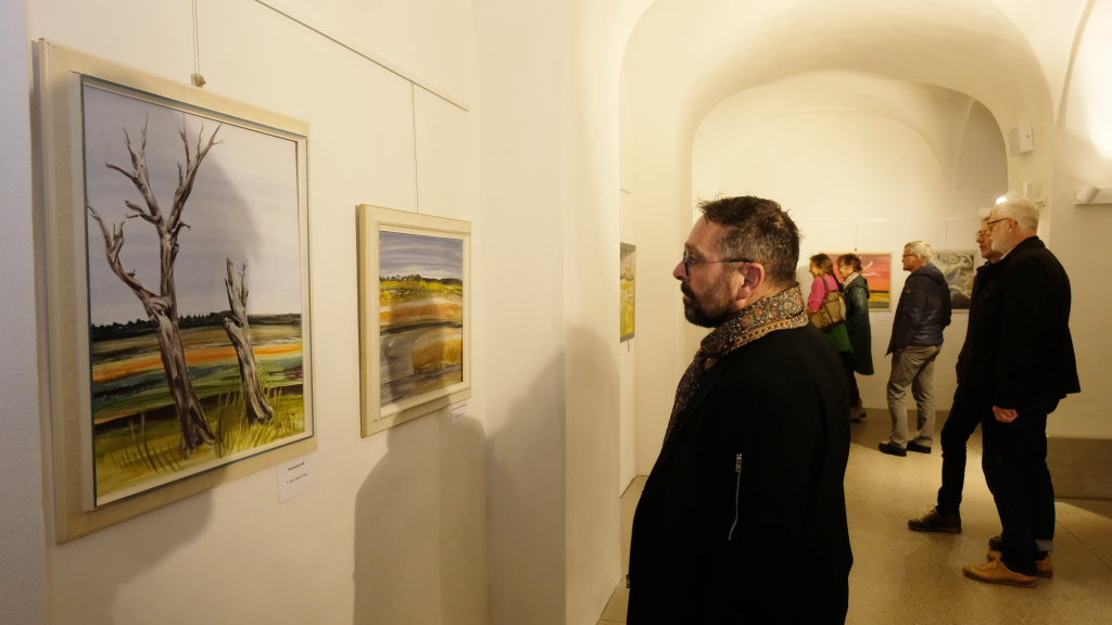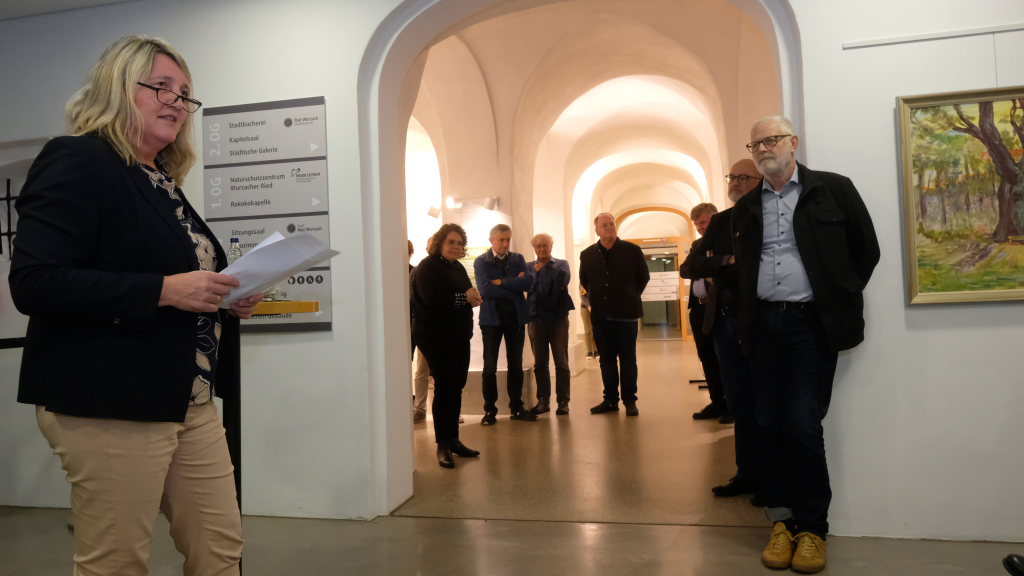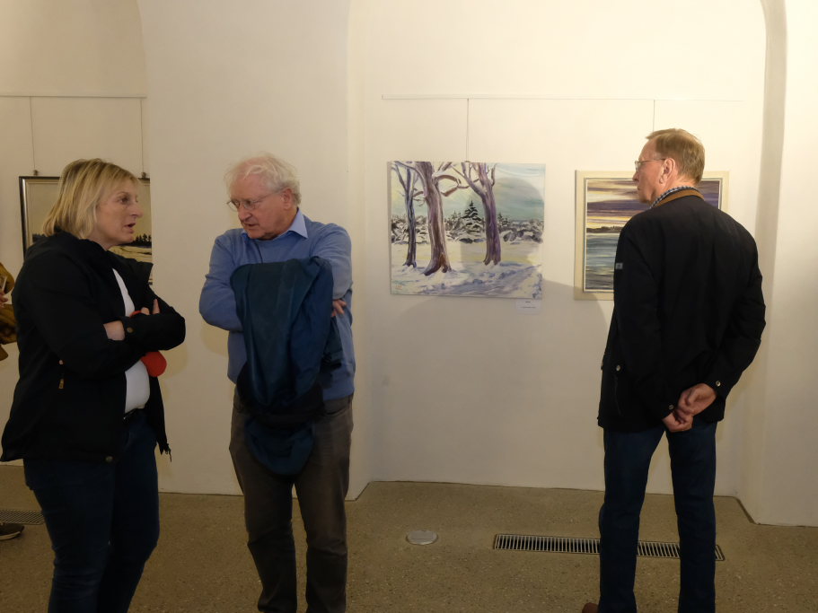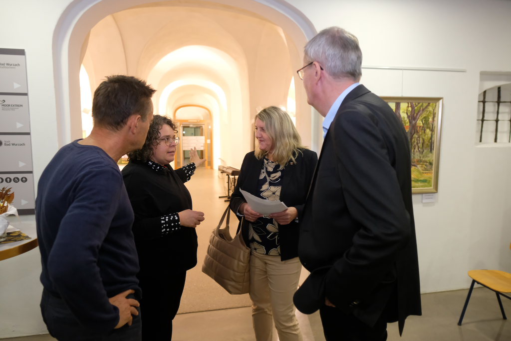 Bei einem Gläschen Wein gab es noch lange nach der Ausstellungseröffnung intensive Gespräche im Gewölbegang und den Räumen der Bad Wurzach-Info (BWI).
