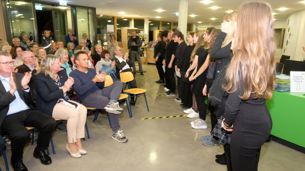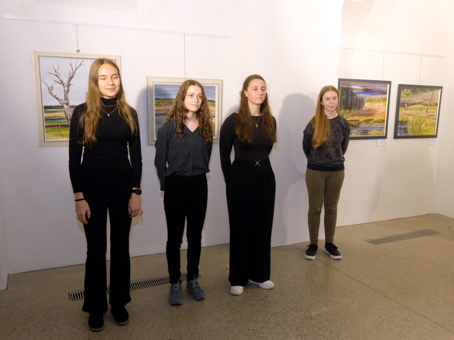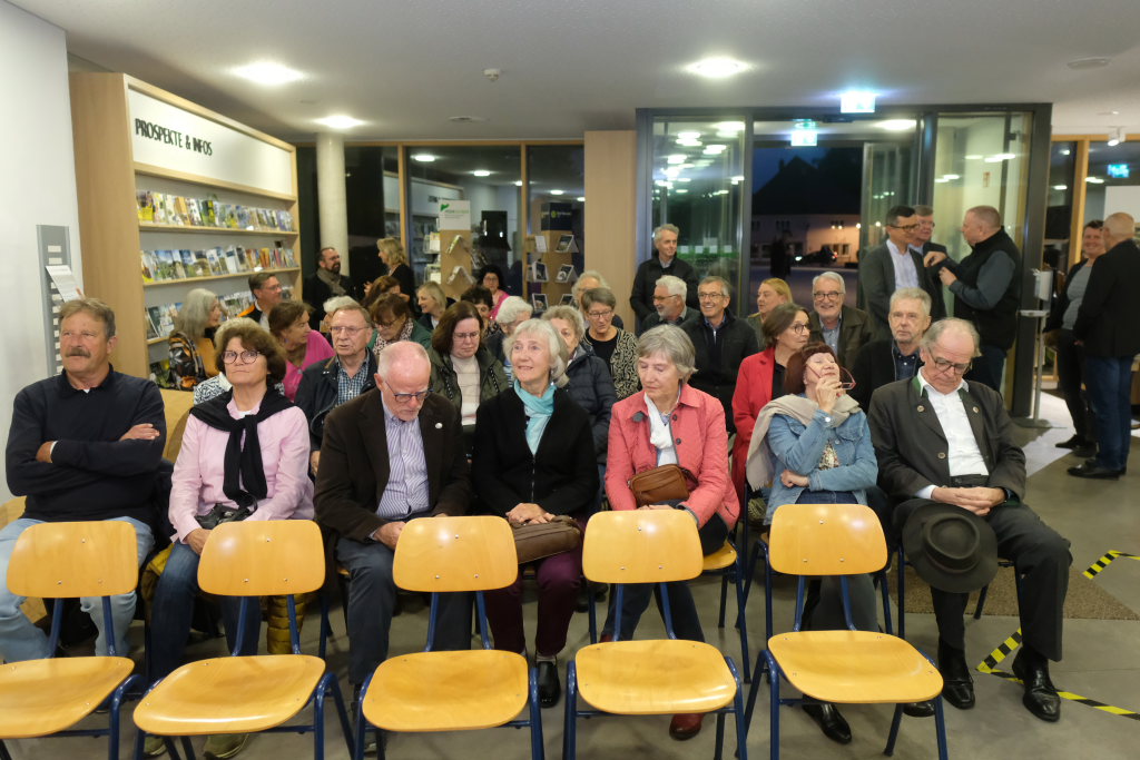 Bürgermeisterin Alexandra Scherer, qua Amtes die Vorsitzende des Stiftungsrates des Naturschutzzentrums Wurzacher Ried, übernahm die Begrüßung der rund 80 Vernissage-Besucher, darunter auch ehemalige Schüler von Pater Egino, denn dieser hatte 29 Jahre am Salvatorkolleg Kunst und Sport unterrichtet. „Die Ausstellung zeigt ausgewählte naturalistische Landschaftsbilder des Paters aus rund 50 Jahren seines künstlerischen Schaffens. Die ausgestellten Bilder sind den vier Jahreszeiten zugeordnet, das nach Meinung der Ausstellungsmacher vom Naturschutzzentrum ein harmonisches Farbkonzept ergeben hat. Überzeugen Sie sich selbst.“ Sie dankte den Machern der Ausstellung sowie den jungen Sängerinnen des Vokalensembles und ihrer Leiterin, die mit “Autumn comes”, einem englischen Traditional, antworteten, ehe Provinzial Pater Dr. Friedrich Emde, der lange Jahre in Bad Wurzach als Lehrer und Schulleiter am Salvatorkolleg tätig war, eine kleine Einführung zum Leben und Werk Pater Eginos hielt.