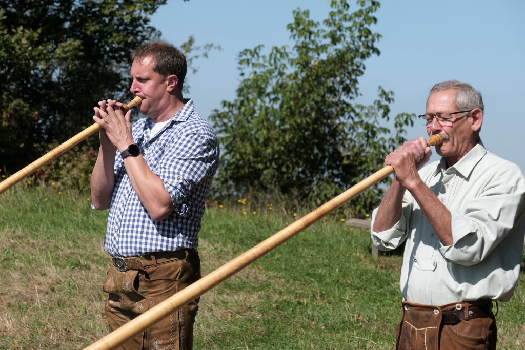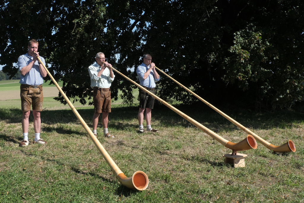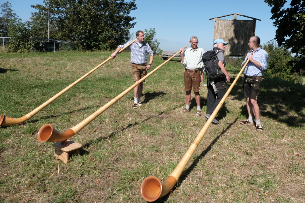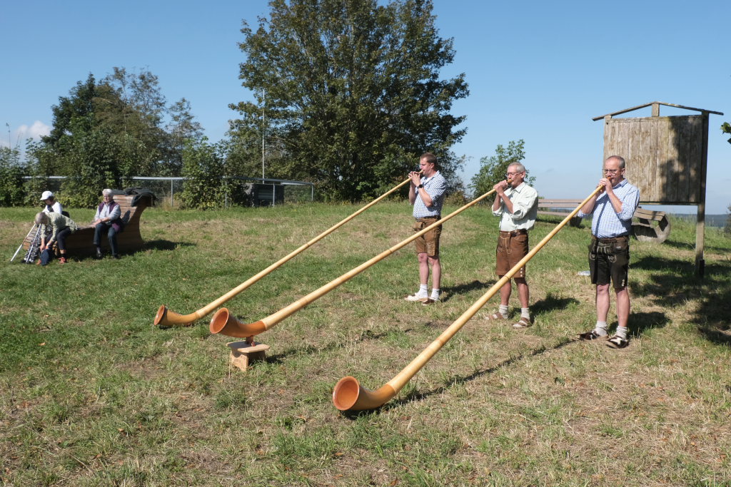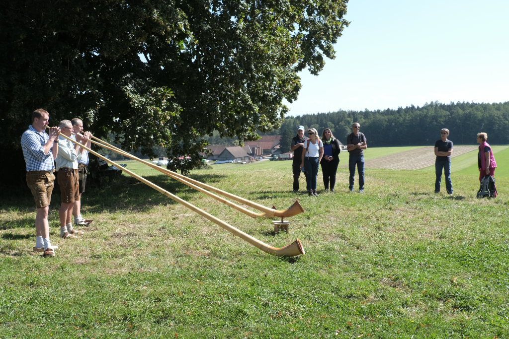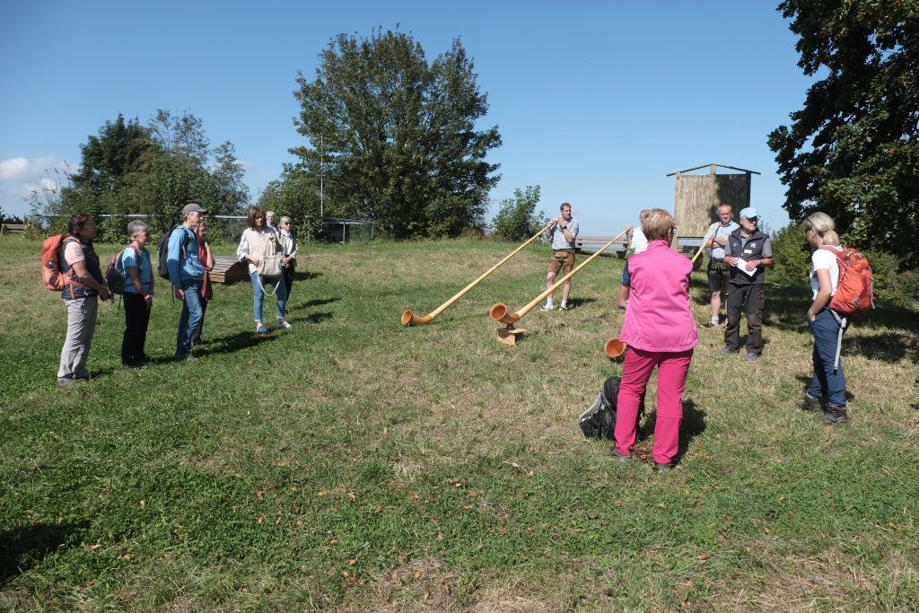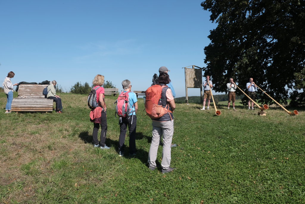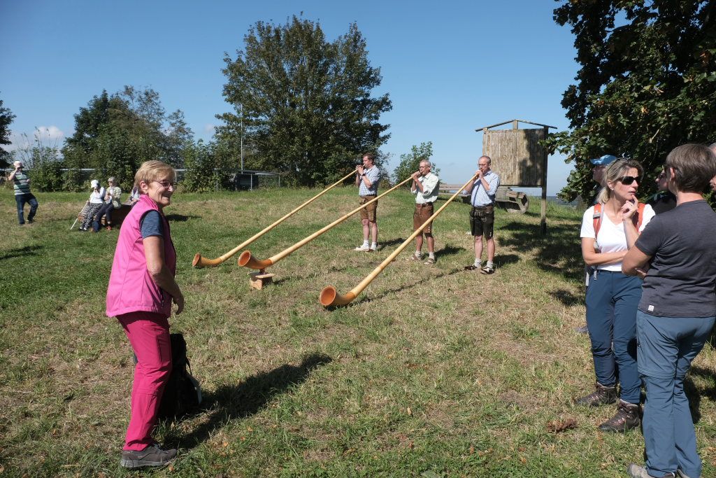 Sie wünschte den Tour-Teilnehmern angenehme Stunden und wenig Blasen auf der rund sechseinhalb Stunden dauernden Wanderung, auf die sie von den Alphornbläsern mit dem passenden Lied „Kein schöner Land“ entlassen wurden.