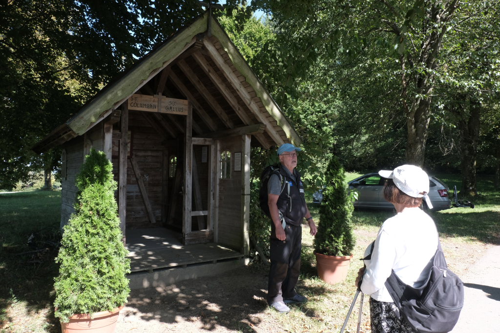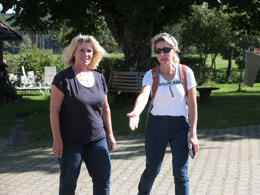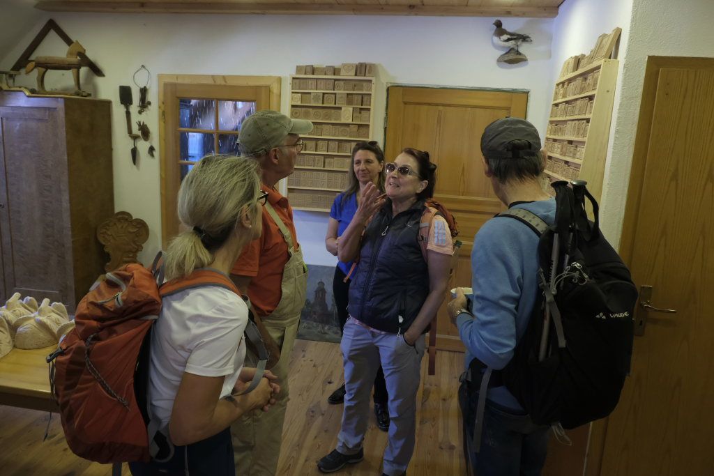 Nach der Besichtigung des Ausstellungsraumes und einer kleinen Stärkung machte sich die Gruppe auf den Weg zur Starkenhofener Kapelle, von wo sie der Weg, vorbei an hölzernen Beobachtern, durch kühle Waldtäler nach Gospoldshofen zur Käserei Vogler führte, wo bei der Rast deren Käsespezialitäten verkostet werden konnten.
