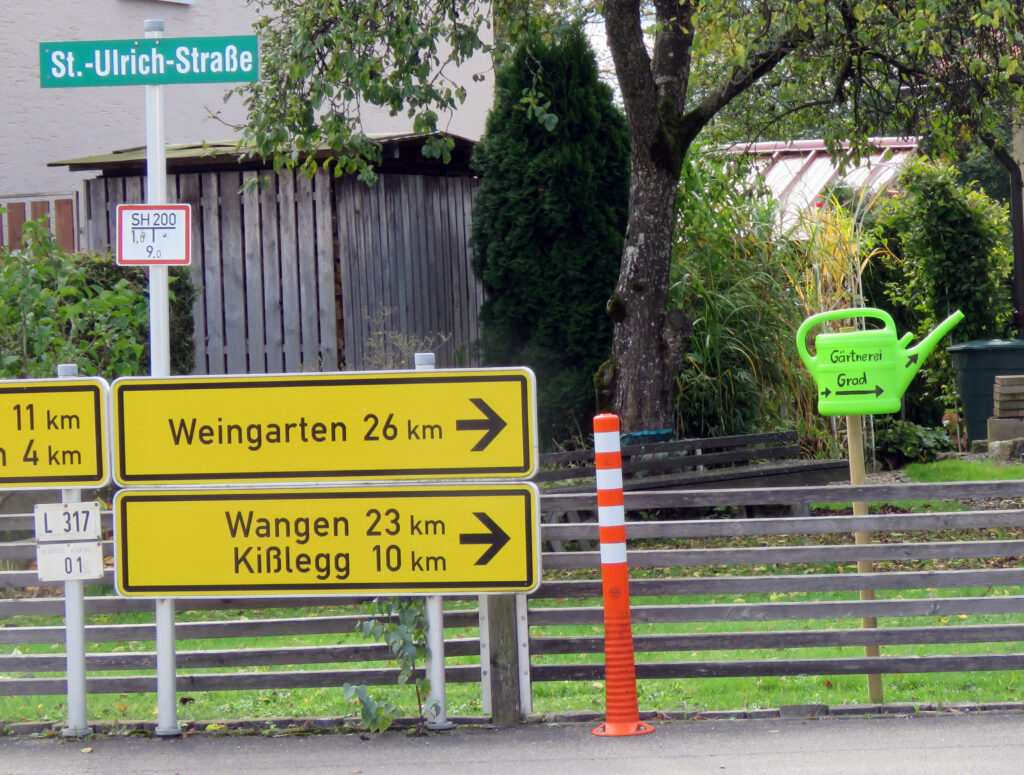 Grad-Gießkanne an der Gabelung St.-Ulrich-Straße (Richtung Kißlegg) und Von-Rom-Straße.