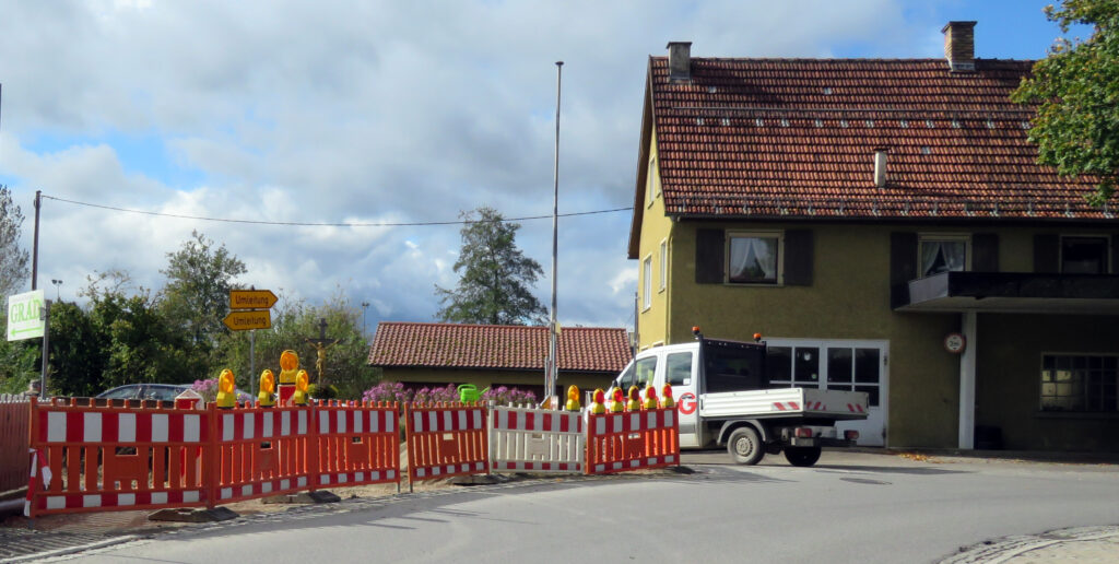 Arnach (rei) – Derzeit sind das Arnacher Lagerhaus und die Gärtnerei Grad über die Ratperoniusstraße nicht zu erreichen. Wegen umfangreicher Straßenbau- und Leitungsbaumaßnahmen ist die Einfahrt in die Ratperoniusstraße an der ehemaligen Tankstelle Gregg gesperrt. Die Umleitung geht über die Kißlegger Straße und dann jenseits des Ortsetters links Richtung Hof Krug und dort erneut nach links Richtung Arnach-Süd. Die Gärtnerei Grad weist mit grünen Gießkannen den Weg.
