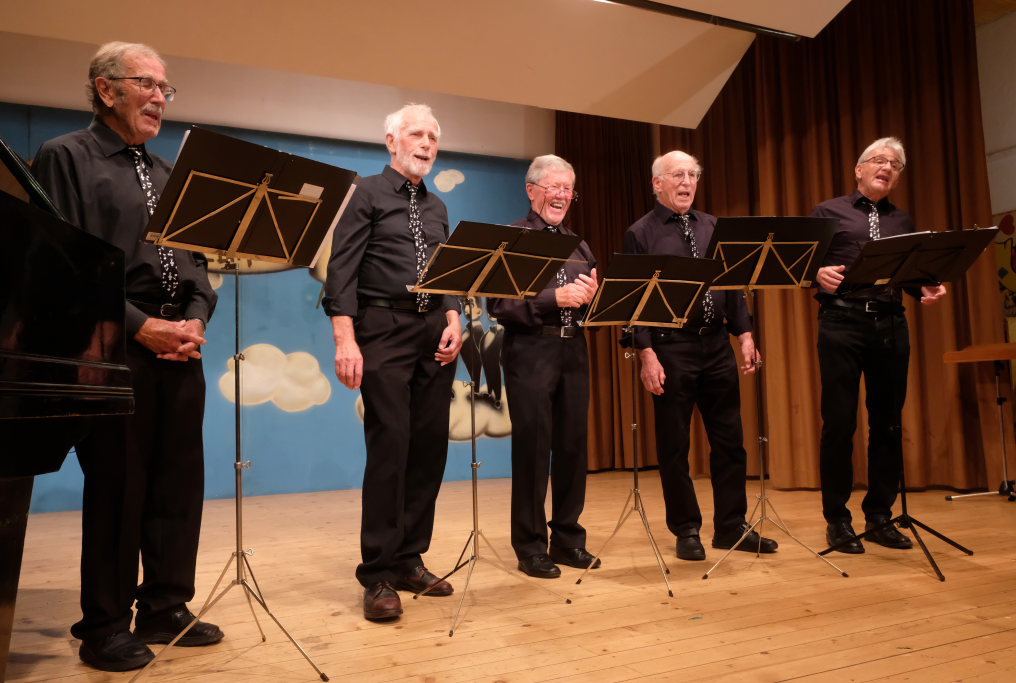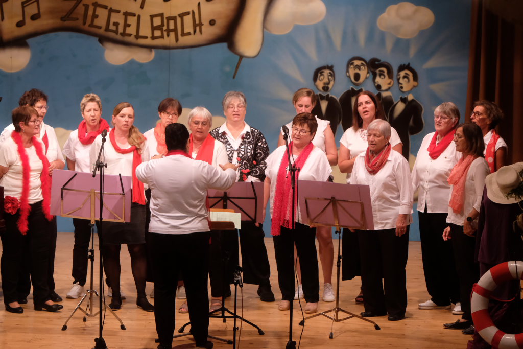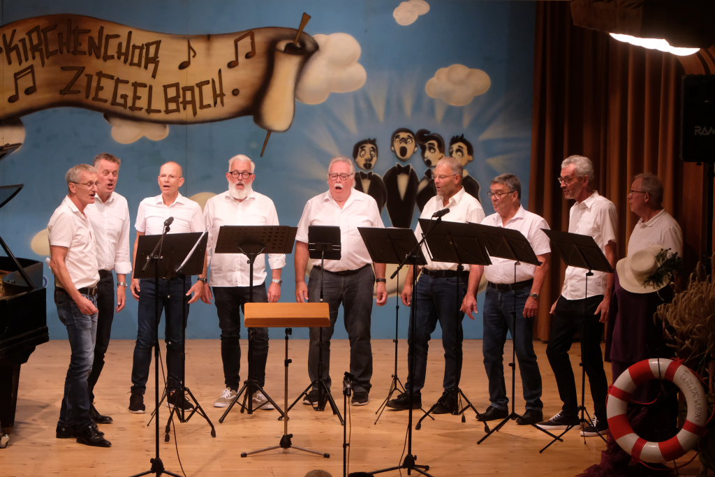 Zum zweiten Mal in Ziegelbach am Start war die ‘Singing men Group’ aus Kisslegg und Umgebung, bei der mit dem Schulleiter des Bildungshauses Arnach ein hierzulande wohlbekanntes Gesicht mit an Bord war. Die Gruppe wünschte dem Publikum zunächst „Have a nice day“ ehe sie mit der Elvis-Ballade „Can´t help falling in Love“ die Herzen der weiblichen Besucher zum Schmelzen brachten.