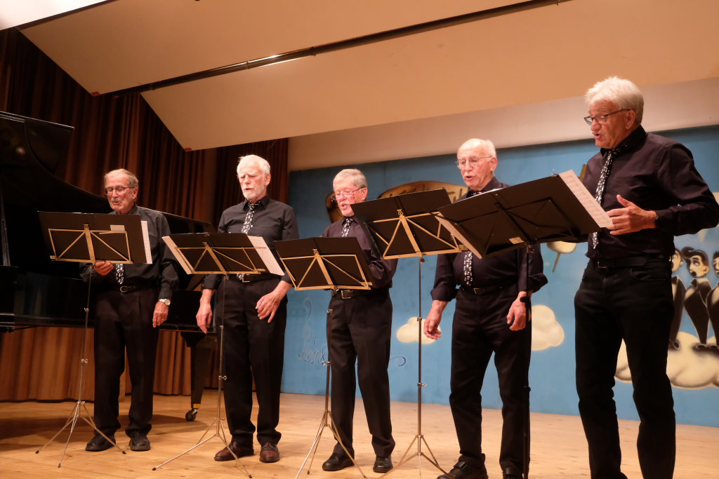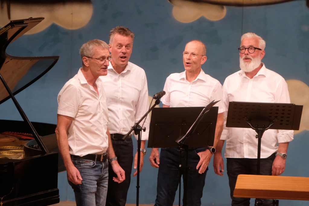 Ihren zweiten Auftritt hatten die vier ‘charrmanten’ Herren mit einem Lied von Friedrich Silcher „Entschuldigung“ eröffnet, dem sie in gewohnter Perfektion das Trinklied „Lasst uns ein Stündlein lustig sein“ folgen ließen. Bei der Zugabe kam Udo Jürgens zu Ehren, und auch wenn die Jungs altersmäßig noch weit von dieser magischen Schnapszahl entfernt sind, übten sie schon einmal…