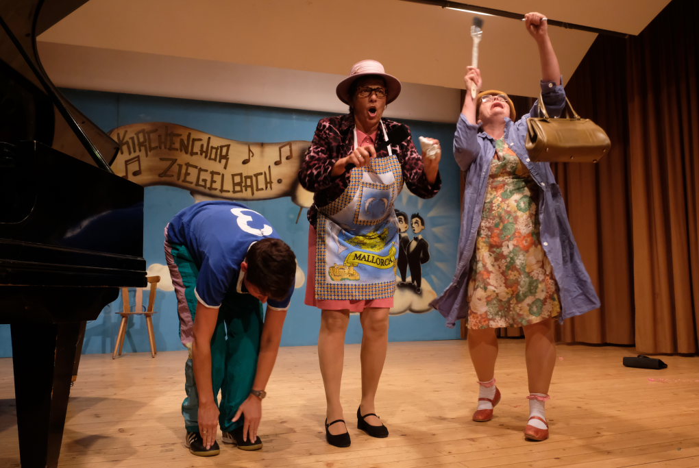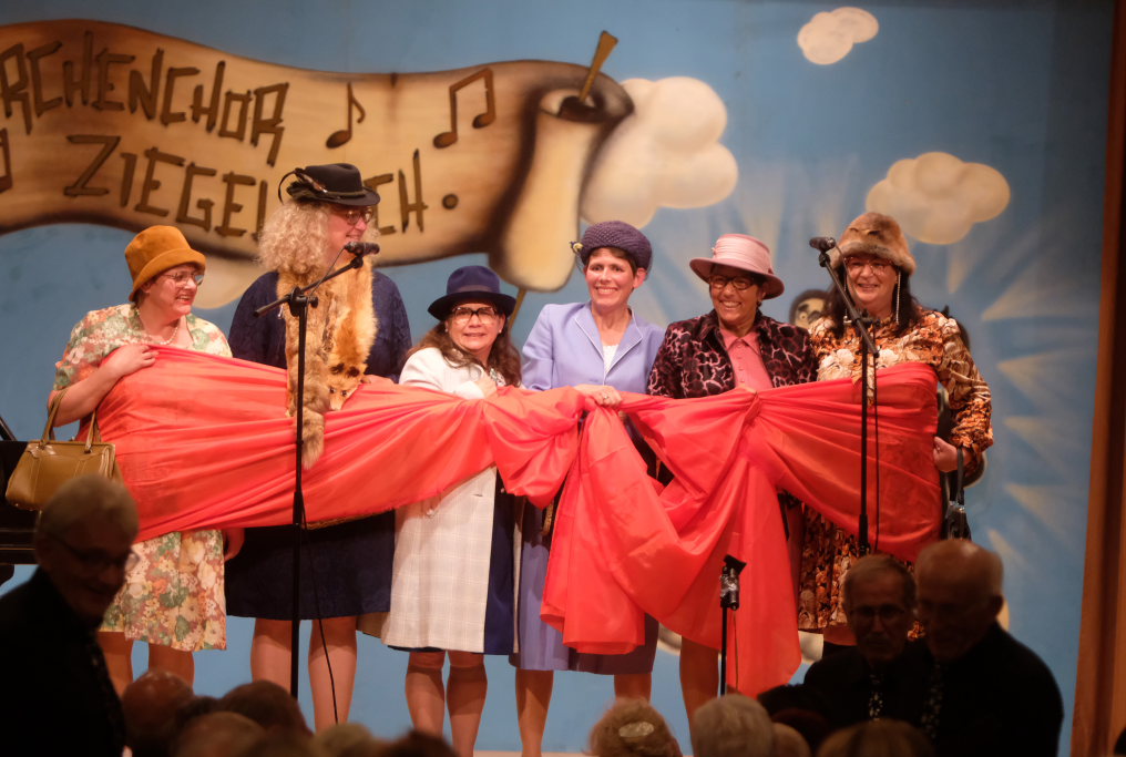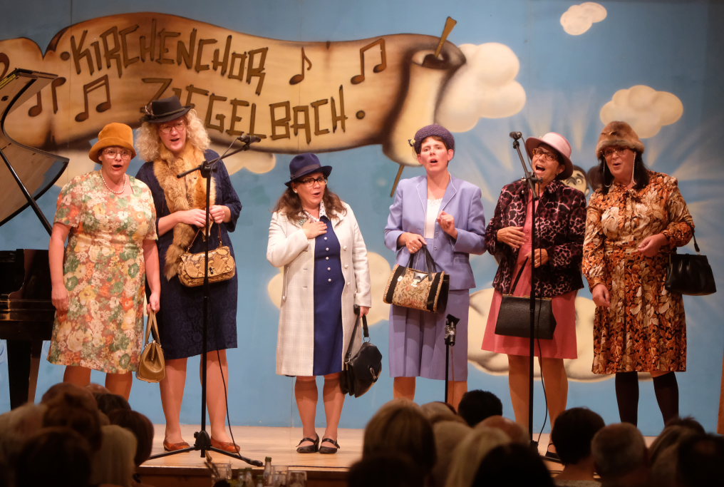 Ziegelbach – Der 25. A-Capella-Abend des Ziegelbacher Kirchenchores bot für jeden Musikgeschmack etwas. Zum Jubiläum gabs als Gastgeschenk von ‘Halba drui’ – ‘Halba drui’, denn die sechs Damen der Comedy-Truppe kamen als Paket mit roter Schleife auf die Bühne, das dann Günter Musch auspacken durfte…
